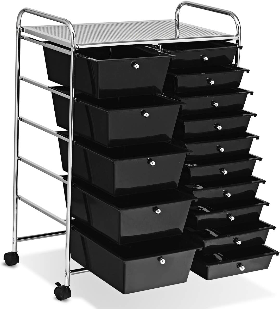 【Uitneembare laden】De verplaatsbare opbergwagen beschikt over 15 aparte laden, die allemaal kunnen worden verwijderd; door de fijne knop kunnen de laden in de rolcontainer probleemloos worden geopend.