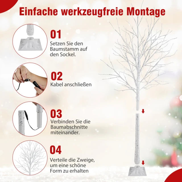 Aanpasbaar uiterlijk: Gemaakt met flexibele PVC-takken, waardoor u elke tak naar wens kunt vormen. Het realistische witte berkenbastoppervlak voegt authentieke charme toe en maakt ze tot opvallende elementen, niet alleen voor Kerstmis, maar ook voor bruiloften, feestdagen of als decoratie het hele jaar door.