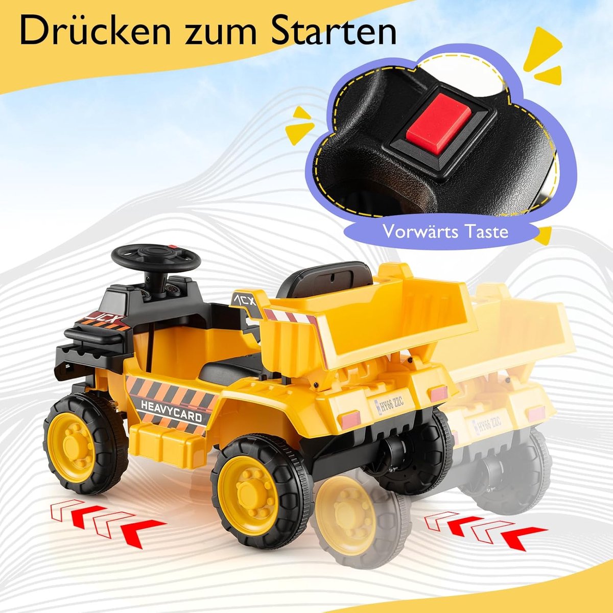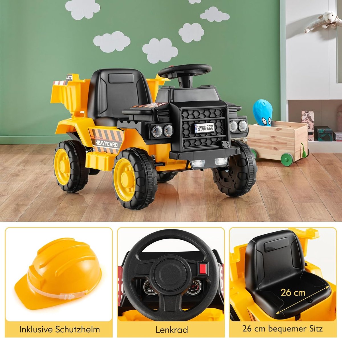 Als je op zoek bent naar een leuk cadeau voor je kind, dan is onze verrijdbare speelgoedgraafmachine voor kinderen precies wat je zoekt. Met zijn stijlvolle design zorgt onze truck ervoor dat je kind gegarandeerd het middelpunt van de aandacht van zijn vrienden wordt. Bovendien is deze speelgoedauto uitgerust met een krachtige motor en kan hij met een snelheid van 2,5 km/u rijden. Wij kunnen je verzekeren dat je kind veel plezier zal hebben met de gesimuleerde rijervaring. Bovendien zorgt de krachtige 6 V-accu na volledig opladen voor 1 uur speeltijd.