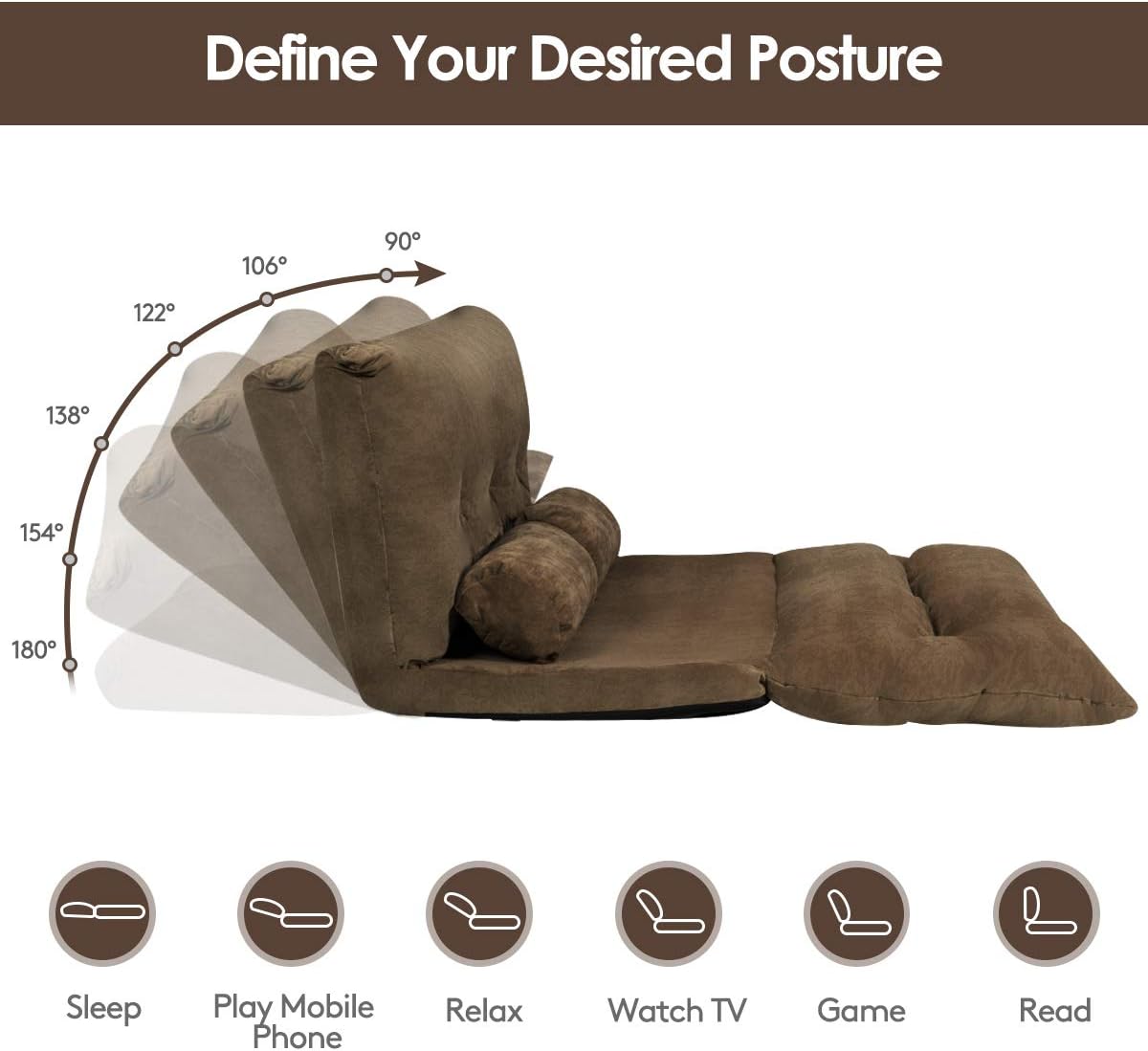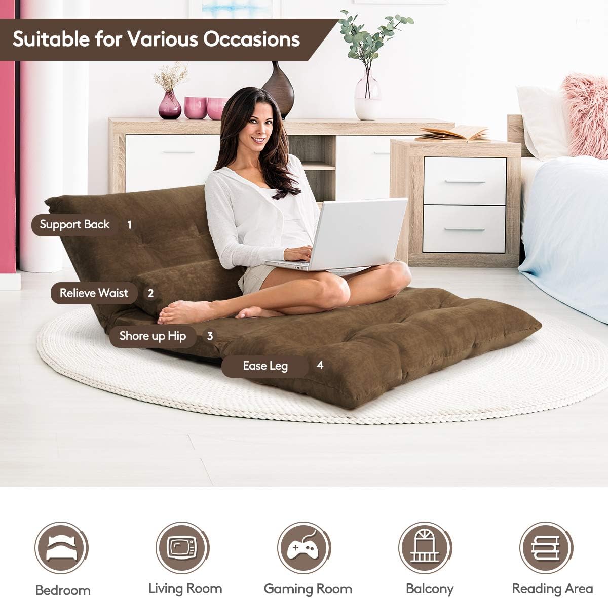 - 【Verstelbare rugleuning hoek】De rugleuning hoek van deze vloer bank kan worden aangepast van 90° tot 180° op 6 kantelstanden om verschillende mensen te voorzien van hun eigen perfecte ontspanning houdingen. U zult zeker genieten van het lezen van boeken, tv kijken of het spelen van videospelletjes in uw vrije tijd.