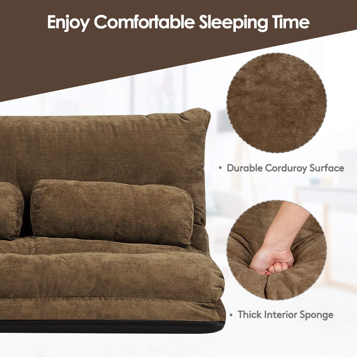 Onze vloerbank is voorzien van opvouwbaar ontwerp, waardoor het uniek en modern in vergelijking met de traditionele. Wat meer is, met een premium metalen frame in de bank, kan de rugleuning worden aangepast op 6 posities binnen 90 ° tot 180 °, die u toelaat om de meest comfortabele houding van uw eigen te vinden, en maakt het ook mogelijk om te transformeren van bank in bed. Hij is sterk genoeg om uw lichaam te ondersteunen, met een draagvermogen tot 150 kg. Gewoon om even uit te rusten na een lange tijd hard werken!