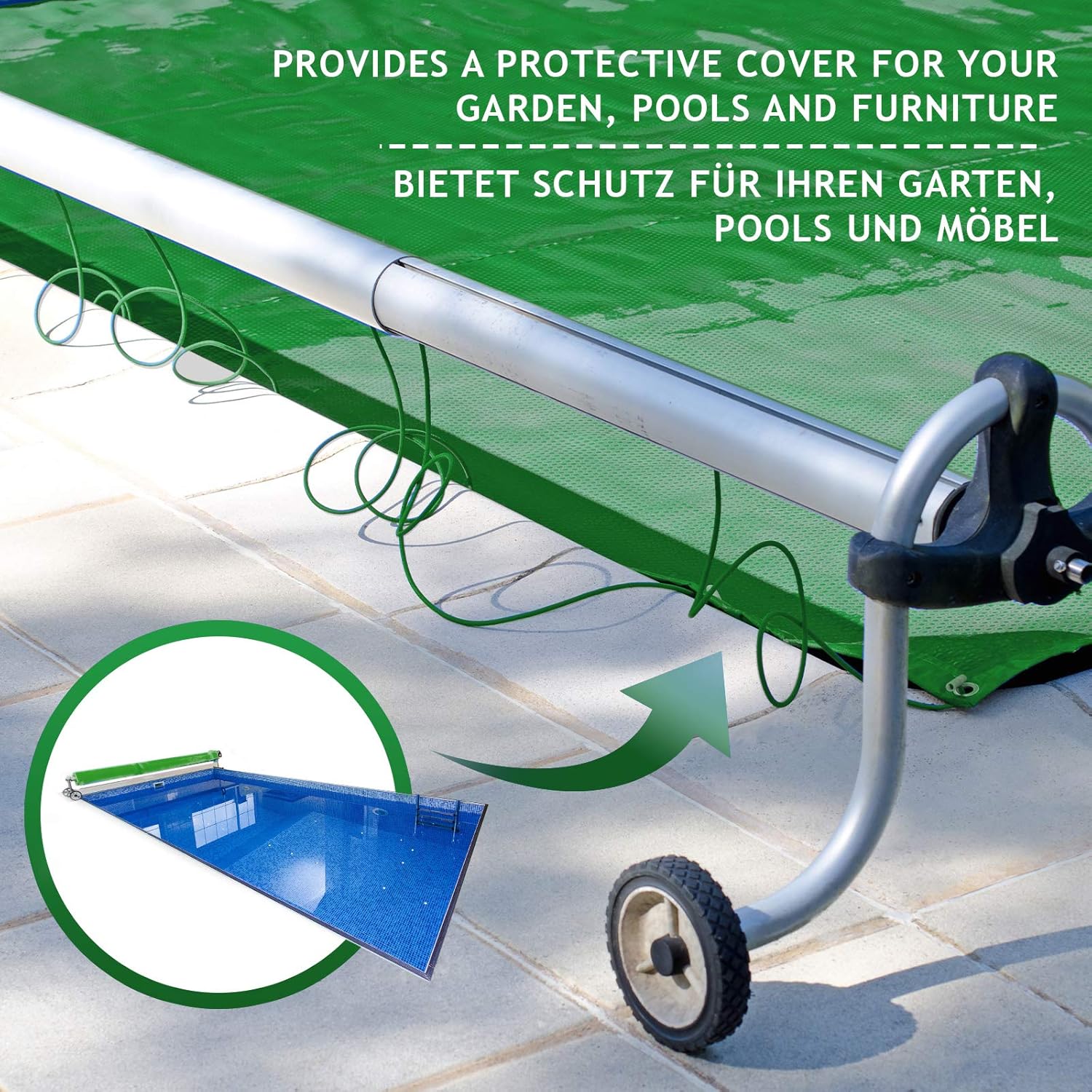 Ons multifunctionele afdekzeil mag in geen enkel huishouden ontbreken dat zijn bezittingen tegen de grillen van de natuur wil beschermen. Dit zeil van hoogwaardig, drielaags pvc-gecoat polyester (650 g/m²) is robuust, waterdicht en uv-bestendig, garandeert duurzaamheid en betrouwbaarheid. Hij is perfect geschikt voor het afdekken van tuinmeubelen, voertuigen, bouwmaterialen en nog veel meer.