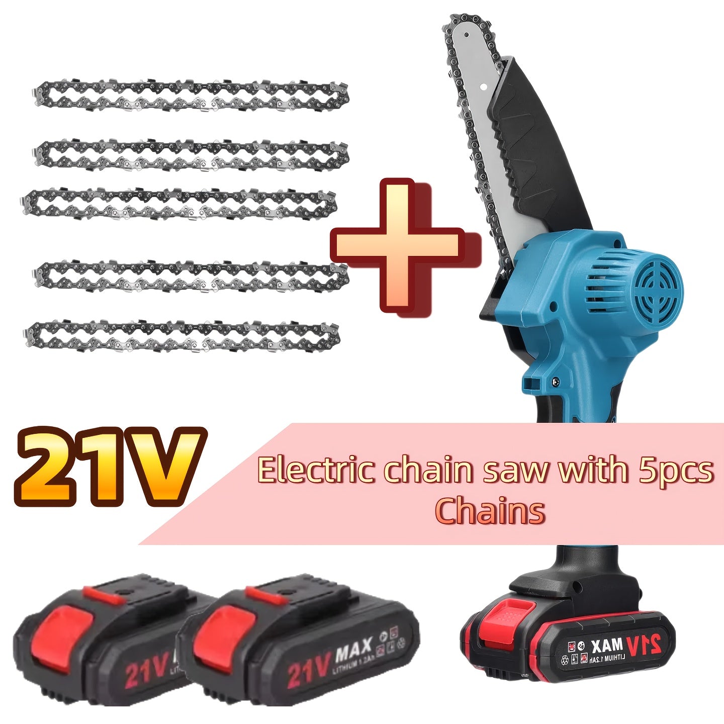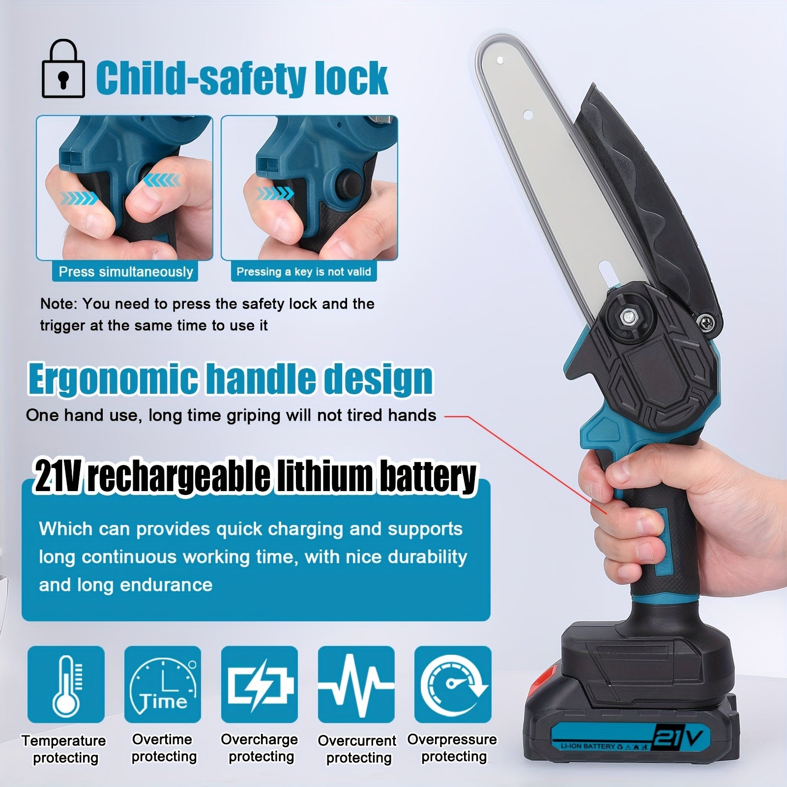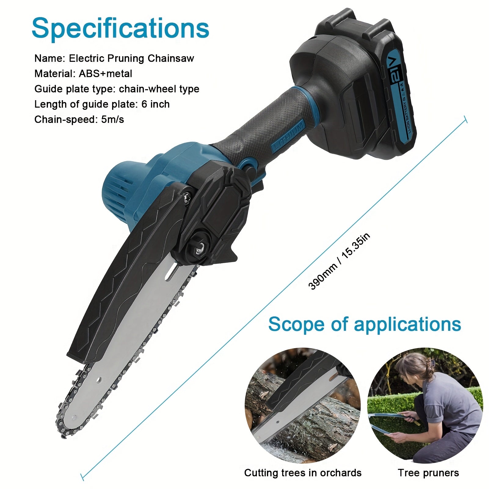 Mini kettingzaag - Elektrische snoeischaar - Met accu - Blauw - LIXADA