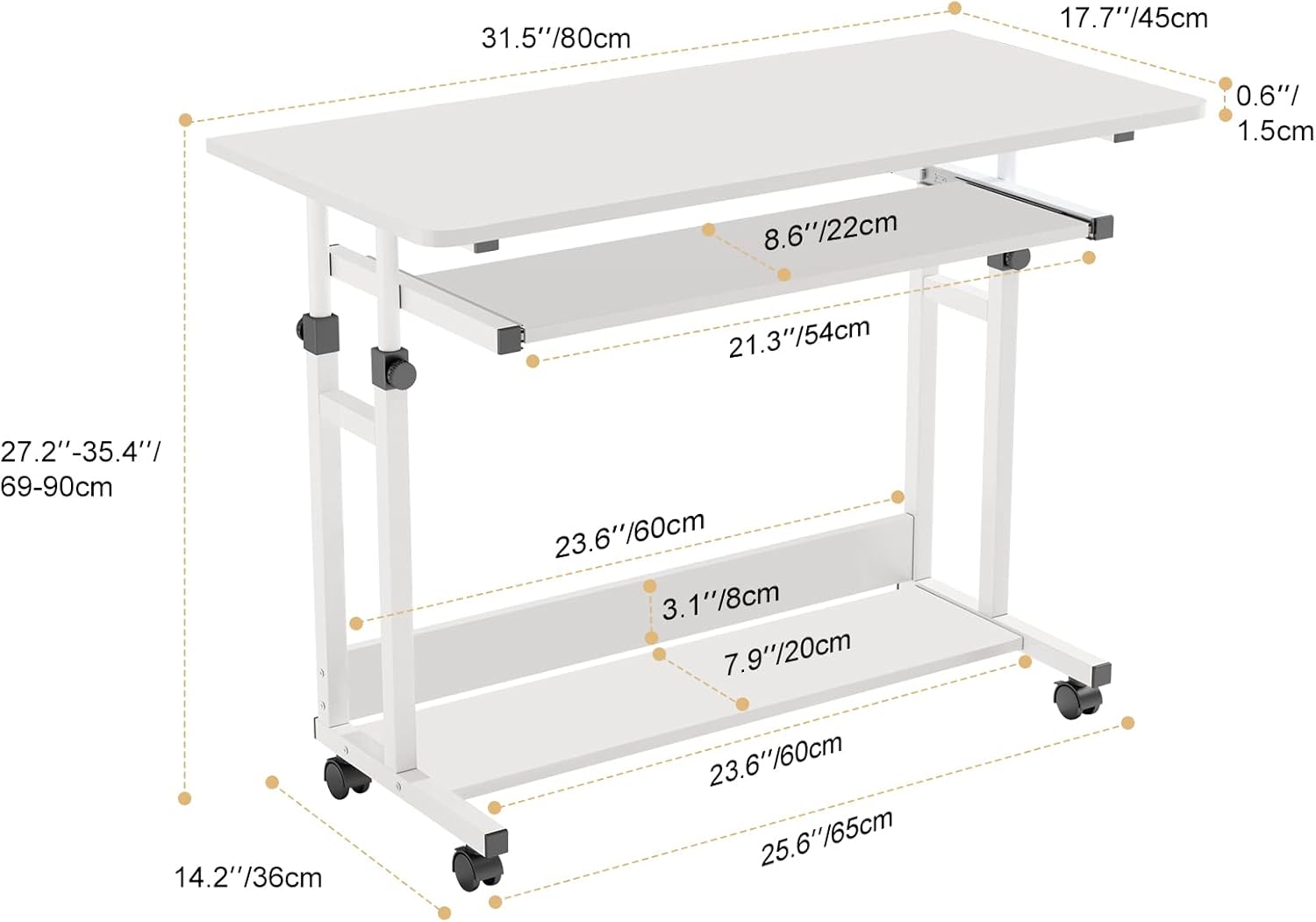 Afmetingen van het bureau: 31,5"L x 17,7"B x 24-35,4"H/80 x 45 x 61-90 cm