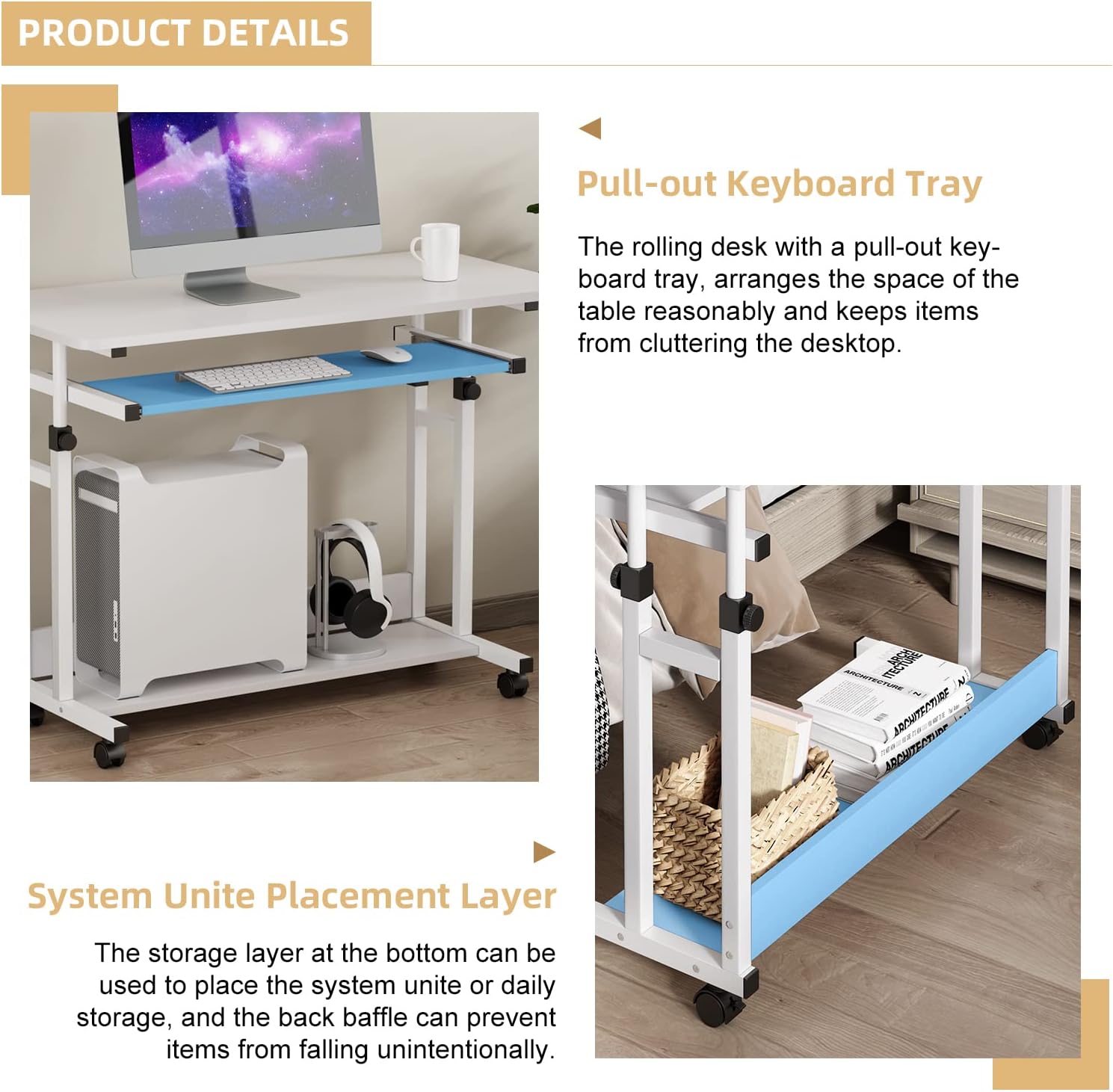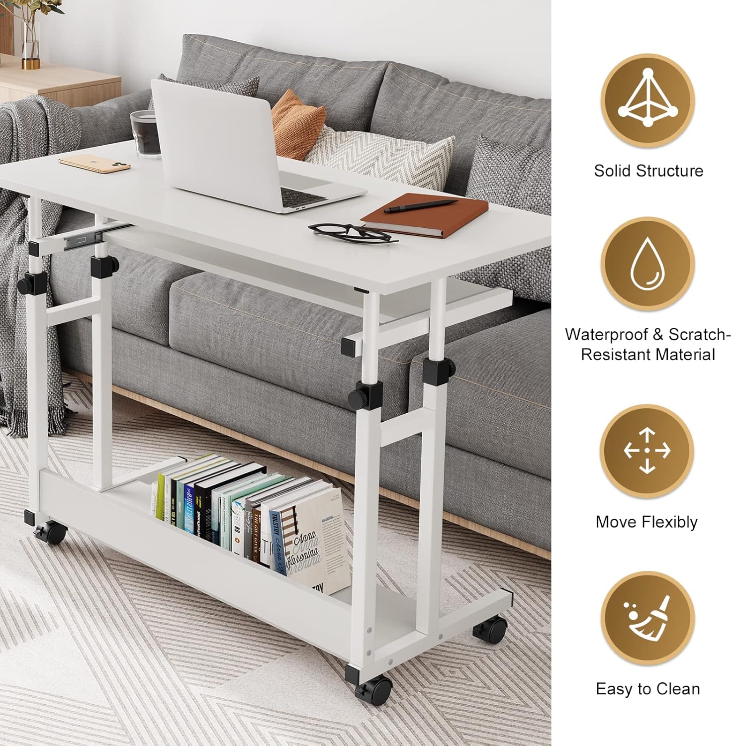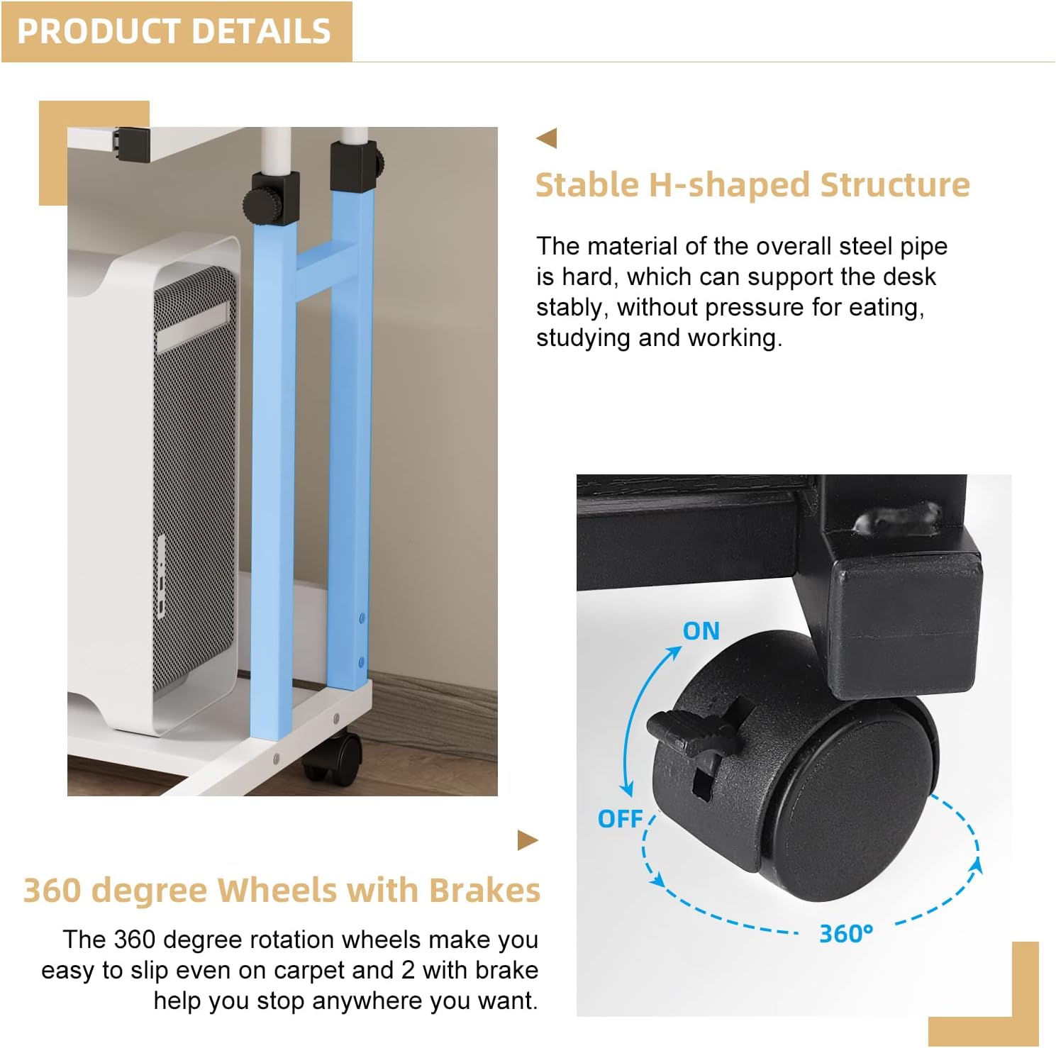 1.Het verstelbare computerbureau kan eenvoudig worden aangepast aan elke gewenste hoogte en stevig worden vergrendeld. Op deze manier kan de mobiele schrijftafel u een comfortabelere positie bieden.