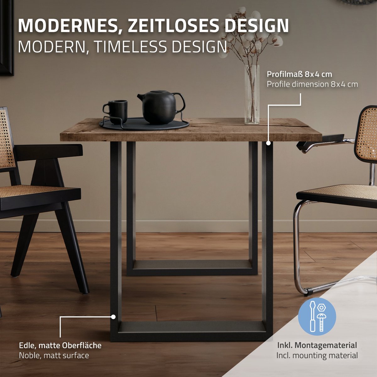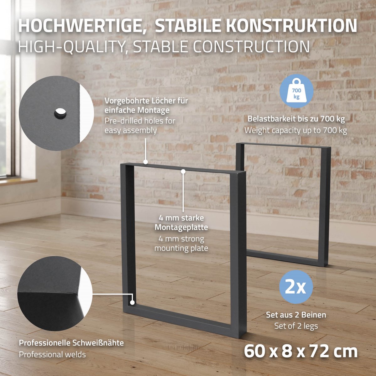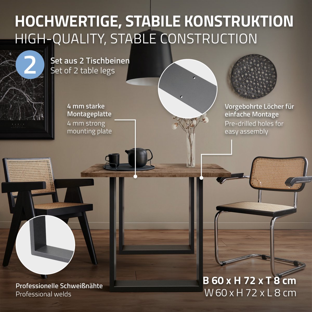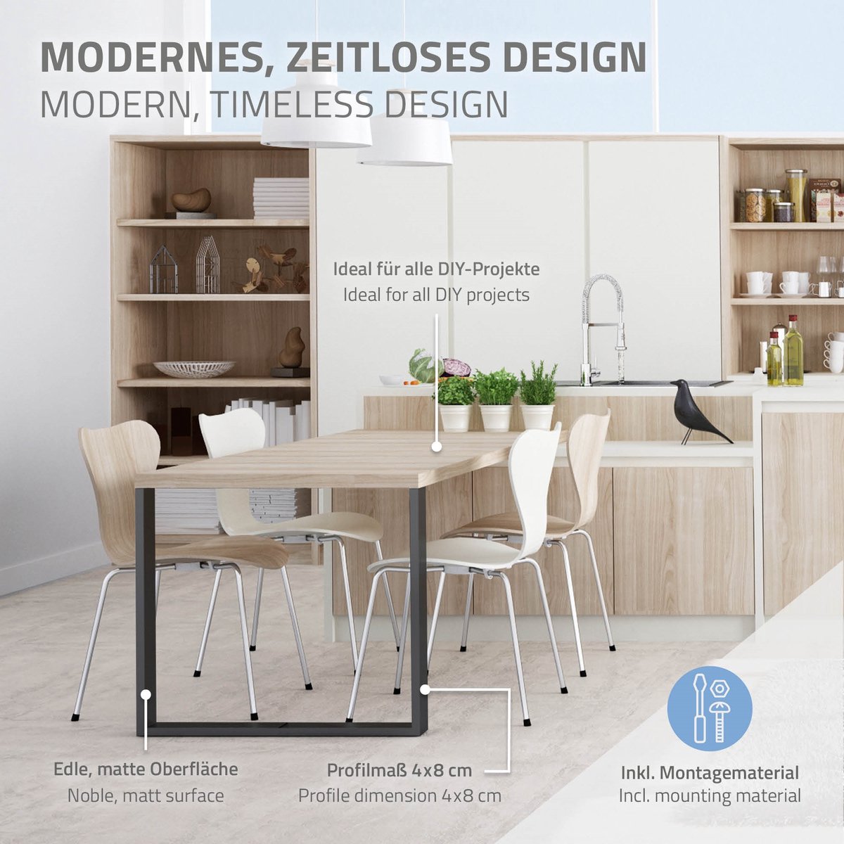 Geef uw tafel een industriële uitstraling met deze tafellopers van ECD Germany. De tafelpoten passen perfect als tafelonderstel in de keuken, voor eettafel of bureau. Ze zijn gemaakt van ca. 4 mm dik plat ijzer en stabiele vierkante profielen.