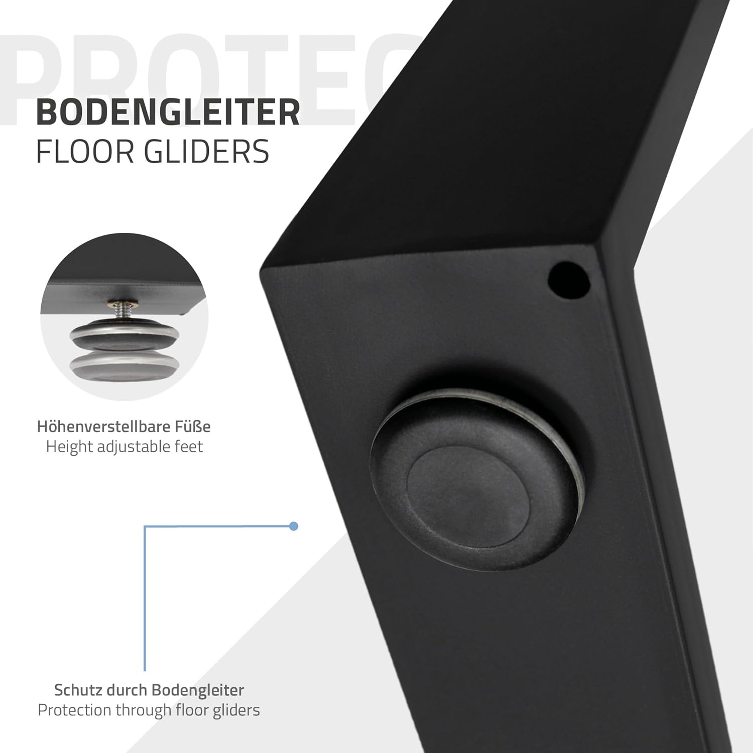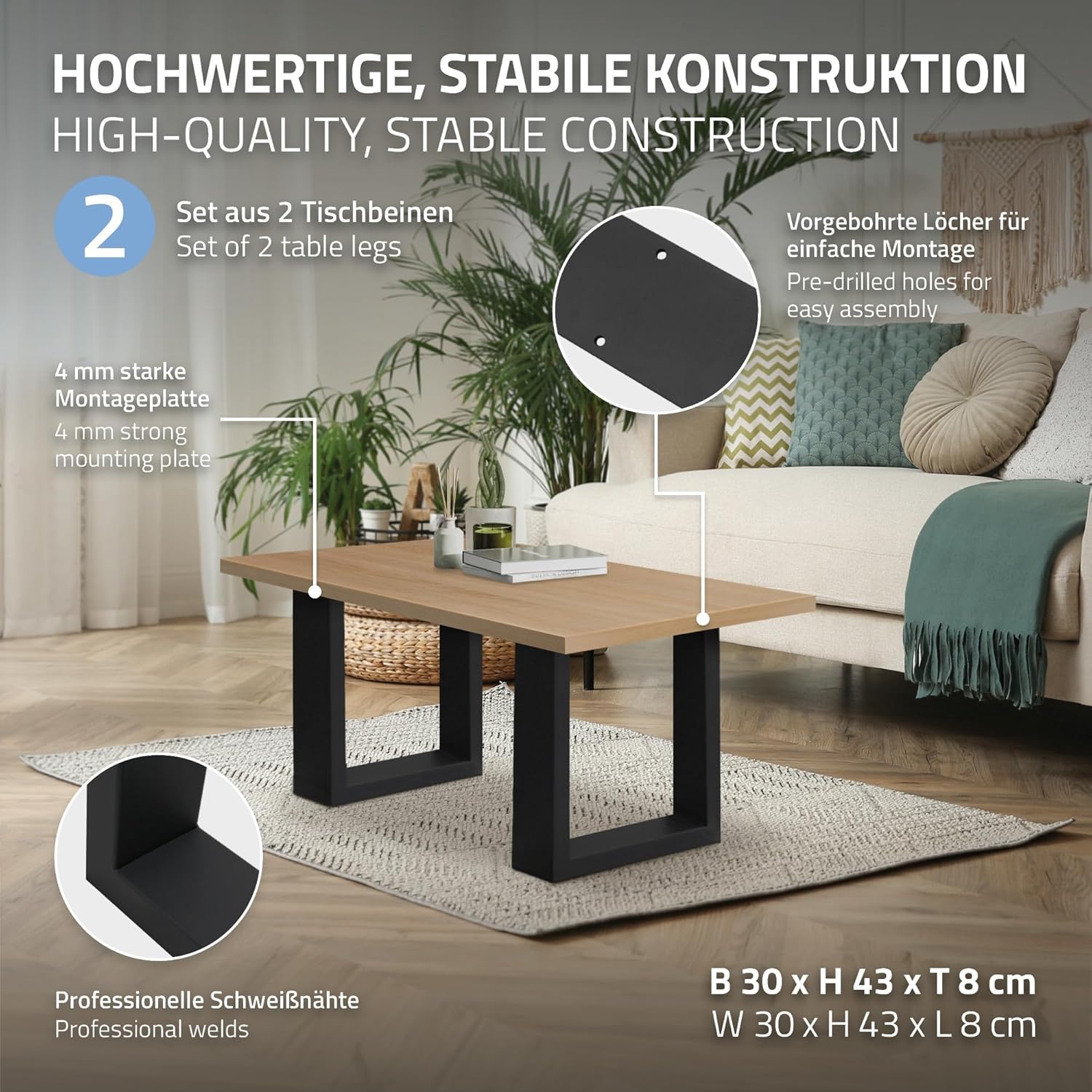 Afmetingen: ca. 30 x 43 cm. De look bekoort door een zwarte poedercoating. De metalen poten worden elk in een set van 2 geleverd. Hoogwaardige tafelonderstel: duurzaam en gemakkelijk te reinigen. Universeel inzetbaar. Voor keuken, woonkamer, kantoor en nog veel meer.Zeer belastbaar. Rechthoekig vormloos, modern designInclusief 4 vloerglijders