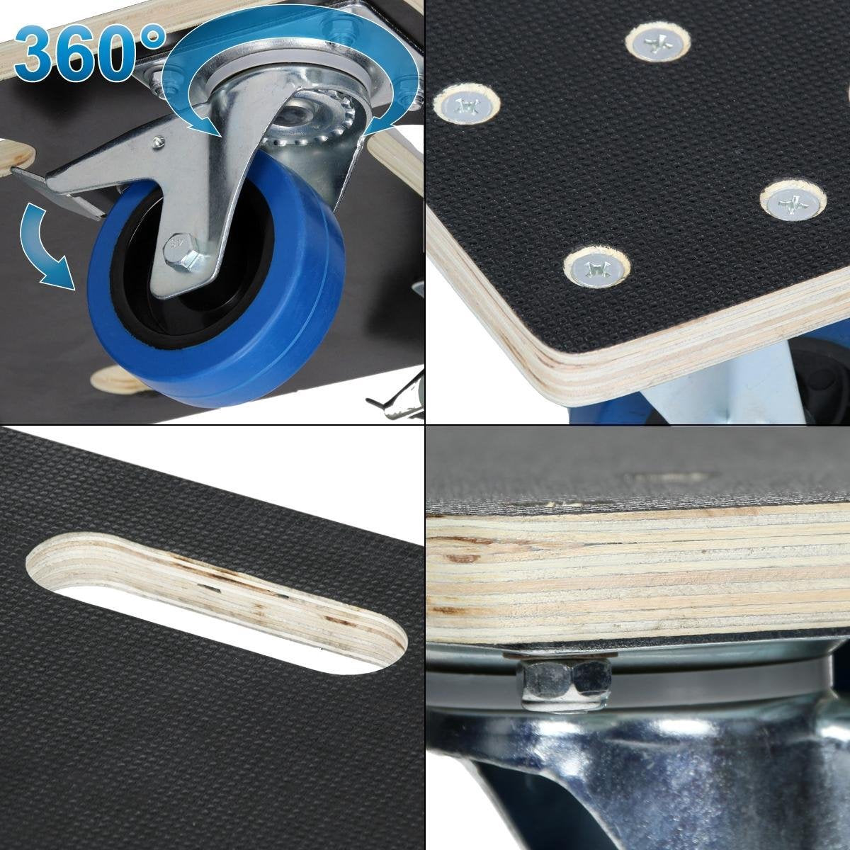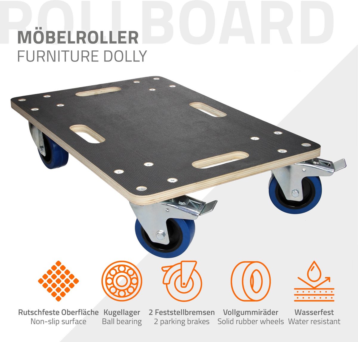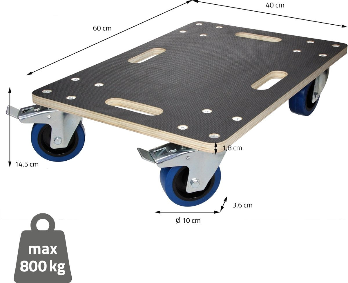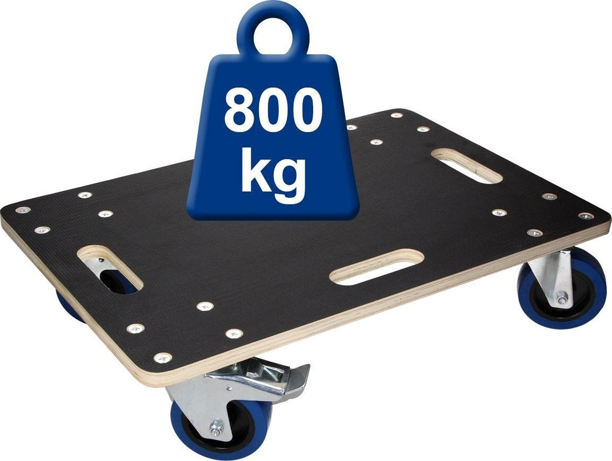 1x meubel dolly met 4 zwenkwielen (2 wielen met blokkeerrem).