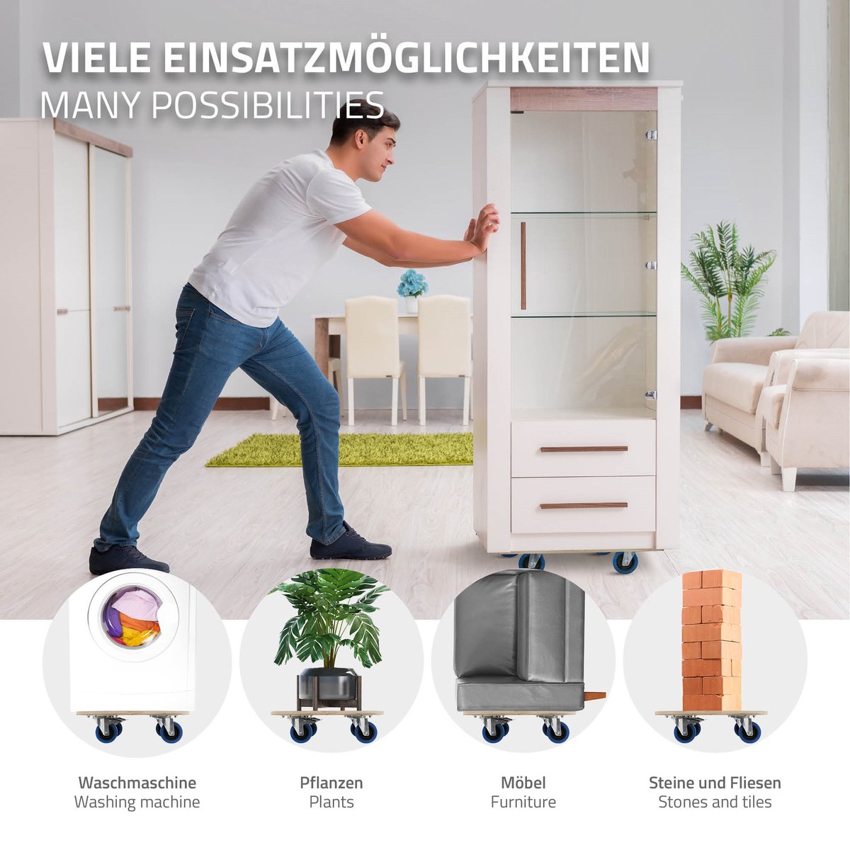 De meubel dolly van ECD Germany is de perfecte hulp als u een verhuizing wilt realiseren, grote machines in een werkplaats moet verplaatsen of in situaties waarin in het dagelijks leven zware dingen moeten worden verplaatst.