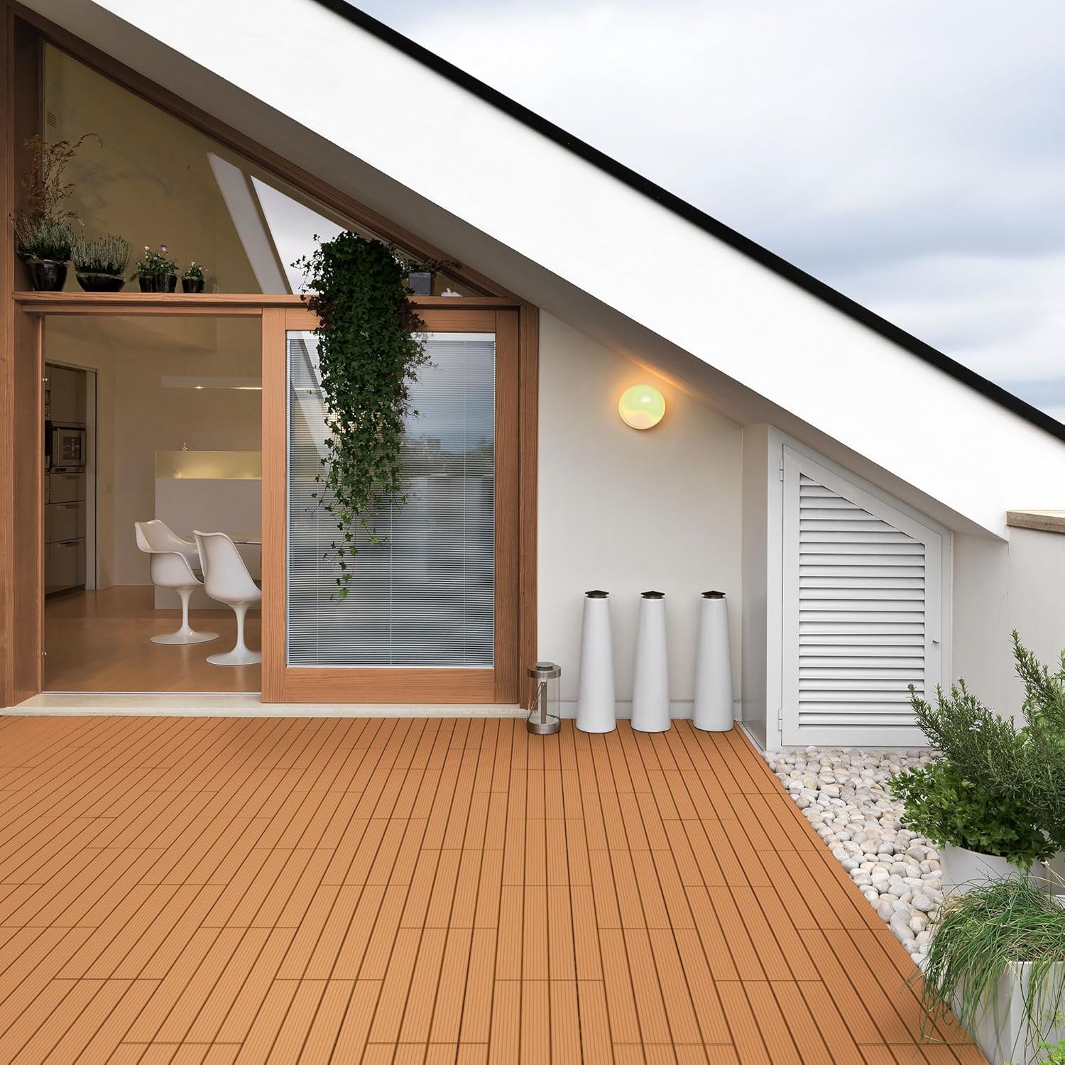 Universeel inzetbaar: ideaal voor elke buitenruimte. WPC-tegels zijn geschikt voor balkon, terras, tuin, serre of als zwembadranding. Tover je persoonlijke en individuele droomterras