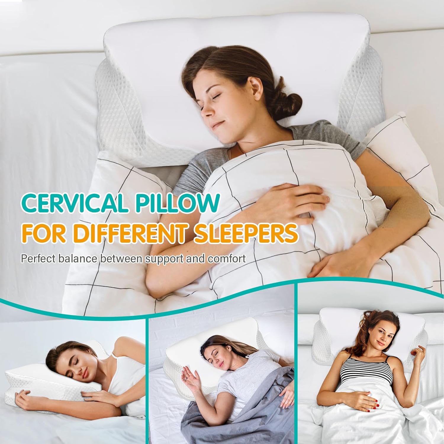 Multifunctioneel nekkussen: dit innovatieve nekkussen beschikt over een uitgekiend design met vijf unieke voorgevormde zones, die zich aan de natuurlijke rondingen van je lichaam aanpassen. Elke voorgevormde zone is zo afgestemd dat hij drukpunten aanziet, de druk effectief verdeelt, de belasting van de halswervelkolom vermindert, je hoofdpijn en nekpijn effectief verlicht, elke nacht van een diepe slaap geniet en verfrist wakker wordt