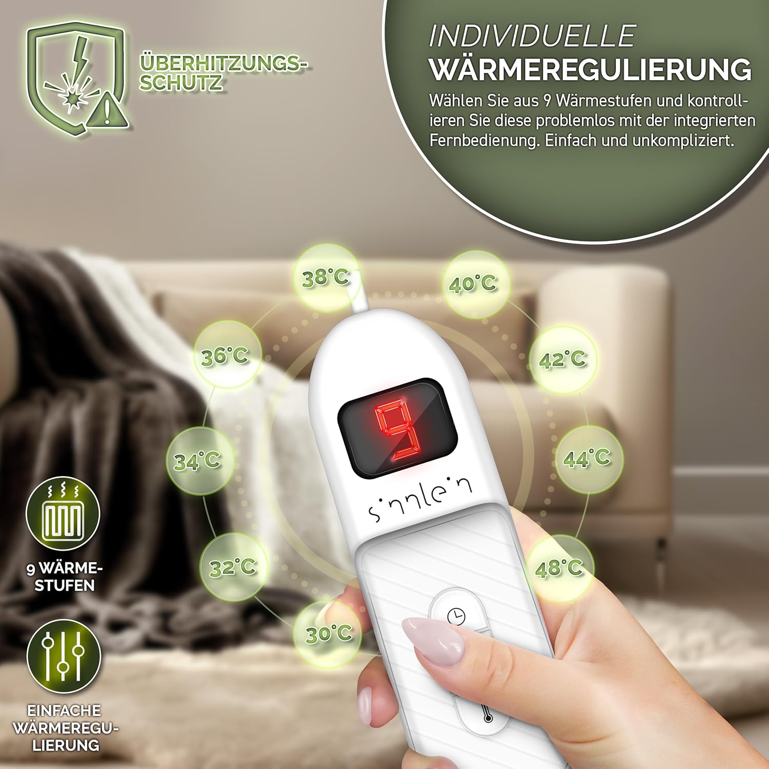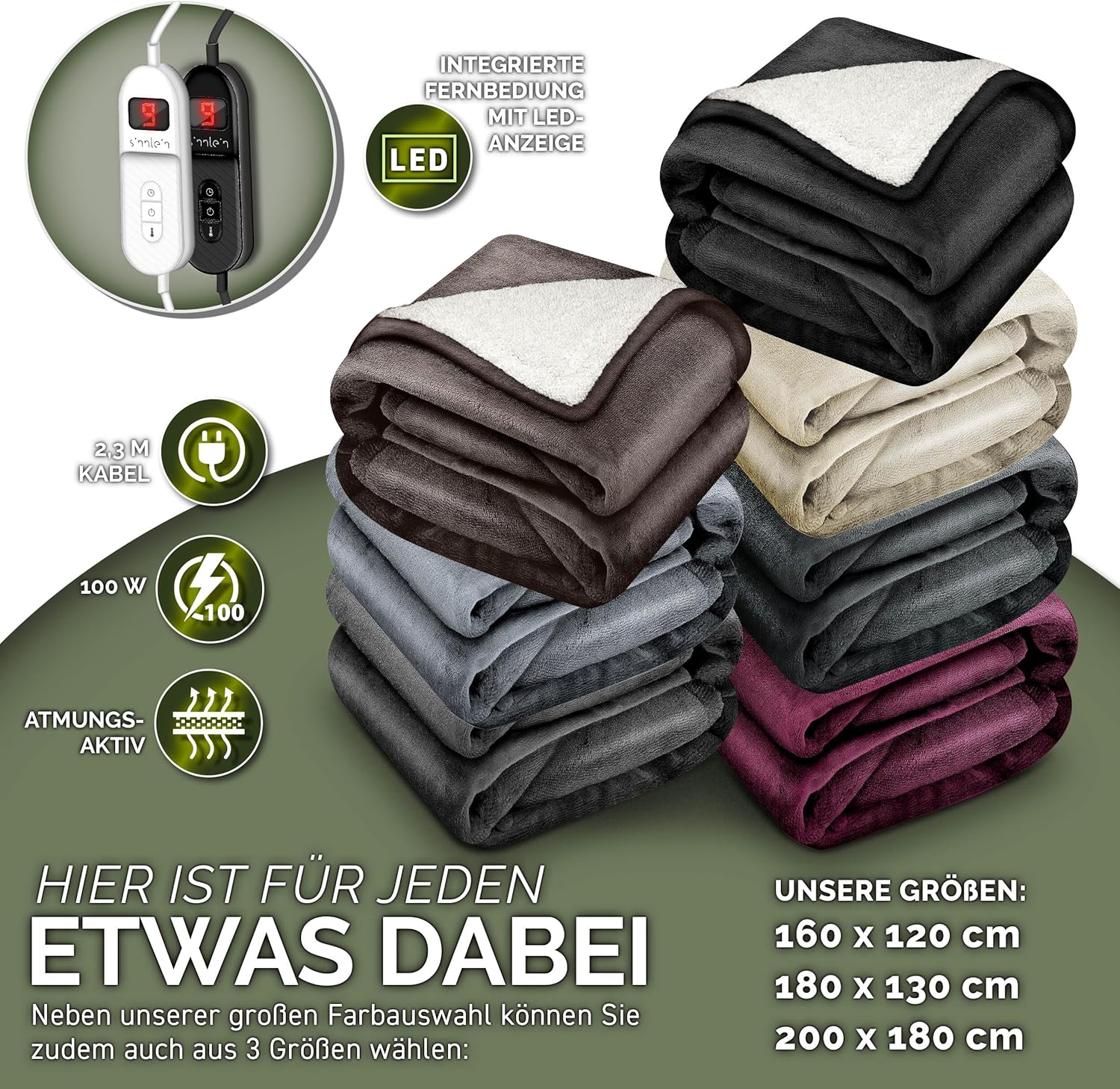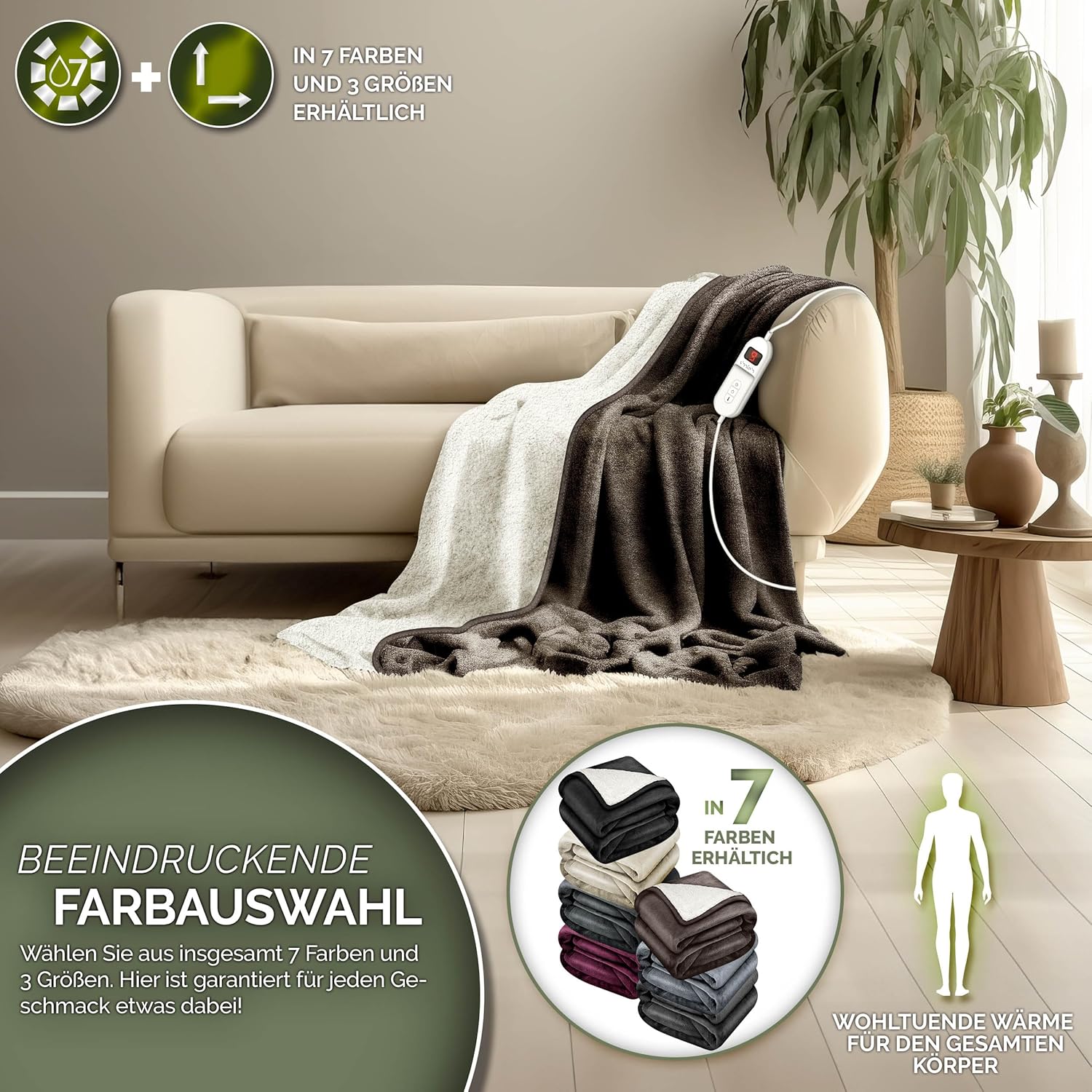 sinnlein Heizdecke Flanell | elektrische Wärmedecke Sherpa mit Abschaltautomatik | Kuscheldecke | Timerfunktion | 9 Temperaturstufen | Digitalanzeige