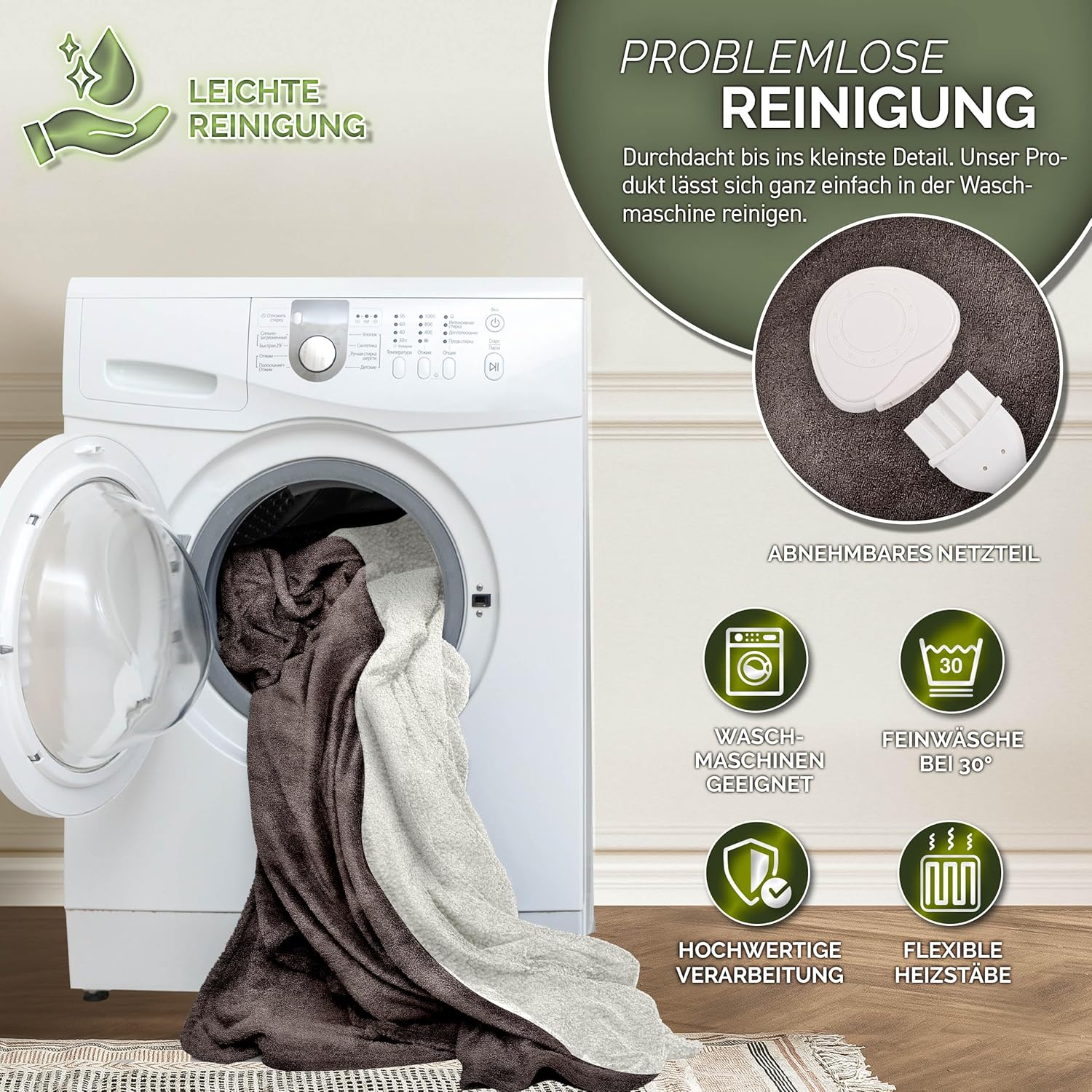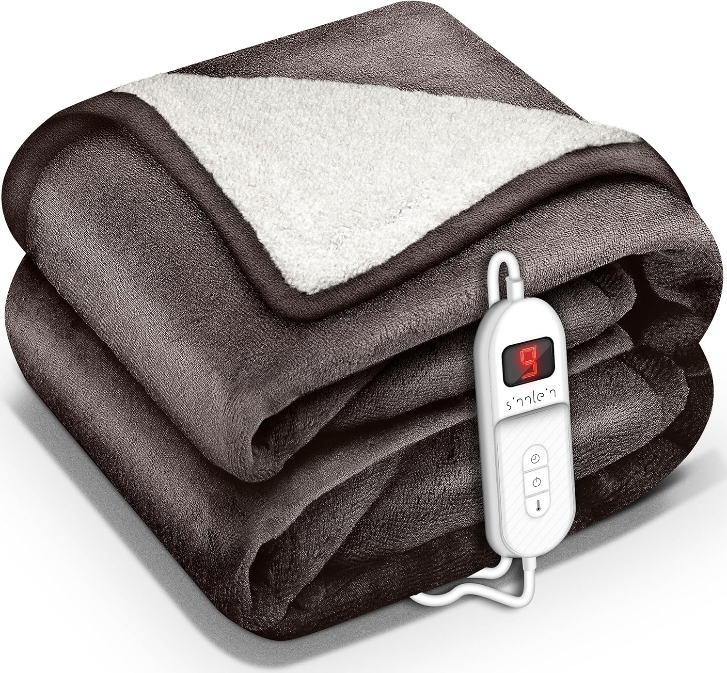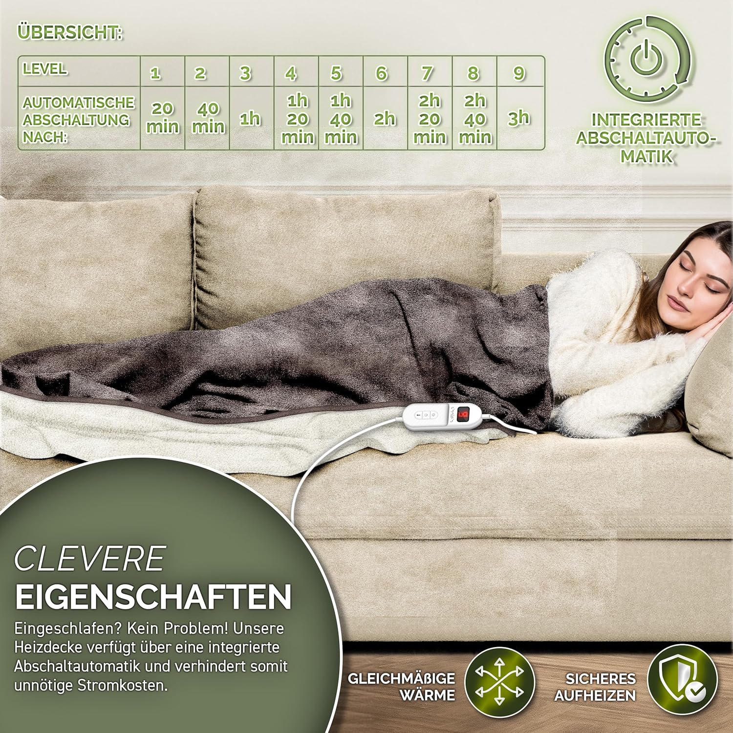 sinnlein Heizdecke Flanell | elektrische Wärmedecke Sherpa mit Abschaltautomatik | Kuscheldecke | Timerfunktion | 9 Temperaturstufen | Digitalanzeige