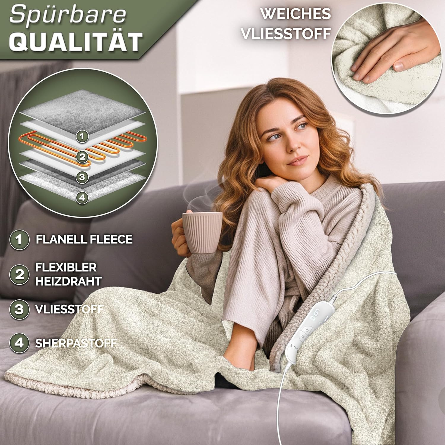 Elektrische deken - Warmtedeken - 2 persoons - 180x200 cm - Beige - Sinnlein®