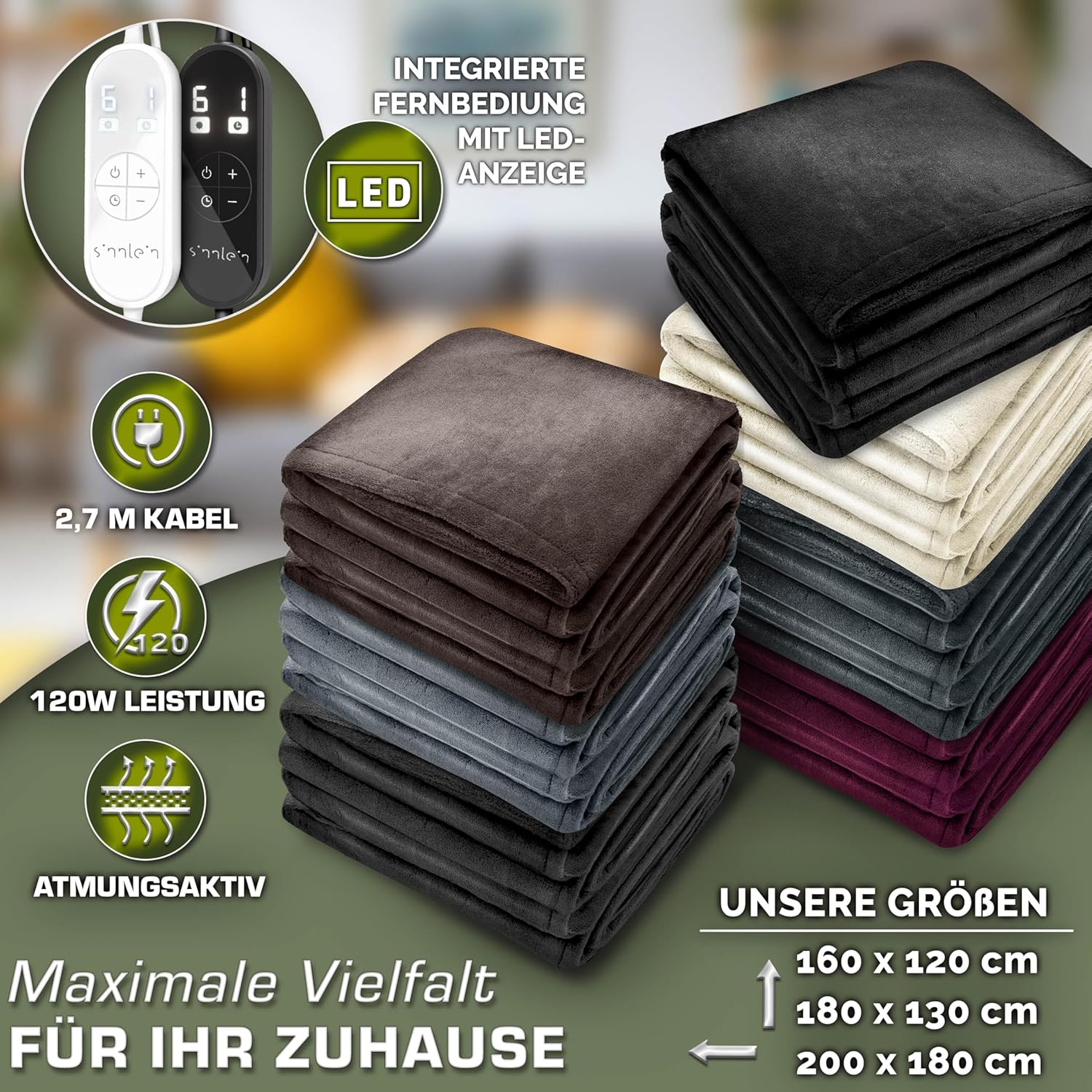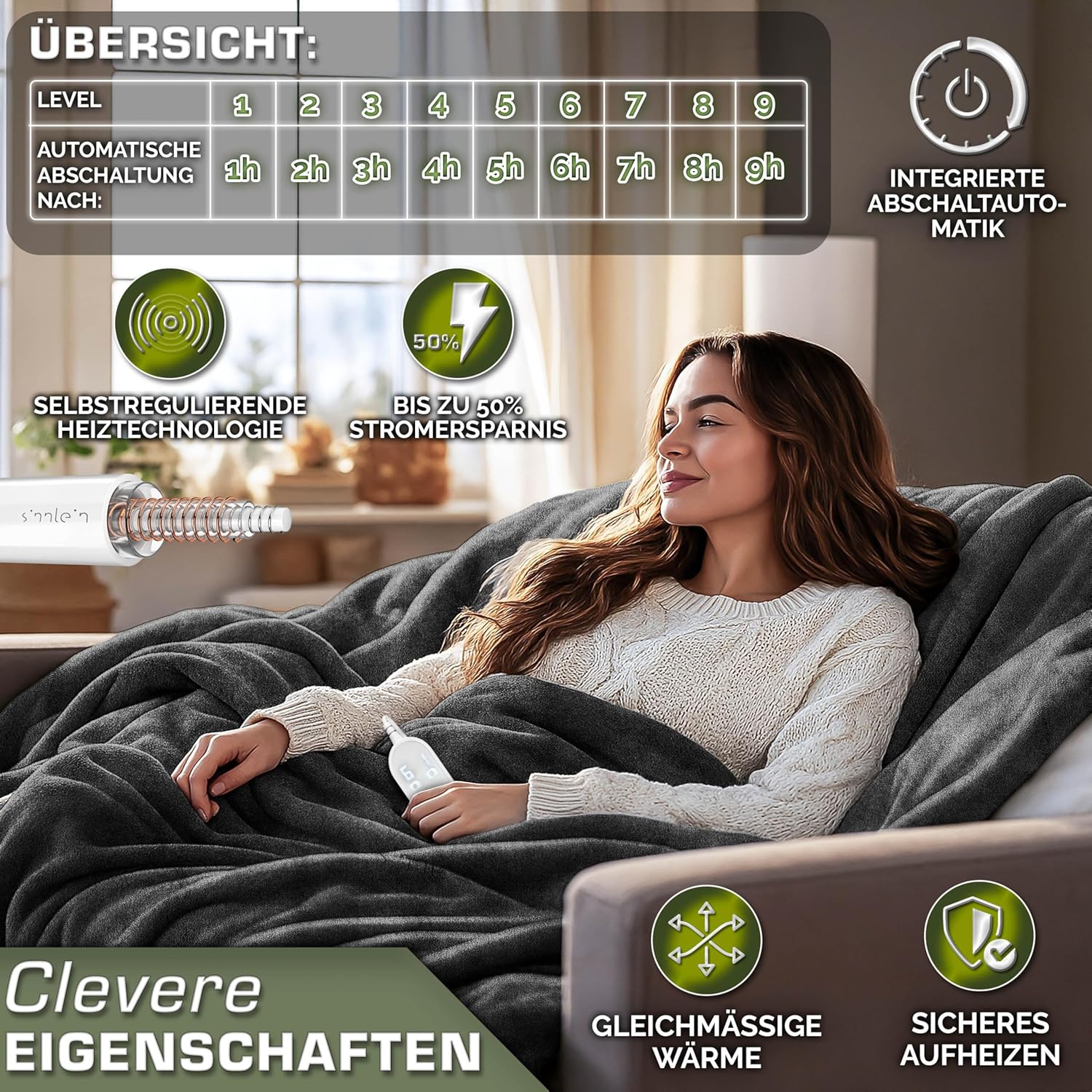 • Verwarmingsdeken voor warme winteravonden: weldadige warmte door een knuffeldeken zorgt voor een warme slaap of een gezellige avond. De sinnlein warmtedeken, gemaakt van behaaglijk pluche, is groot genoeg voor twee personen en kan voor vele toepassingen en aangename uren onder het dekbed worden gebruikt.