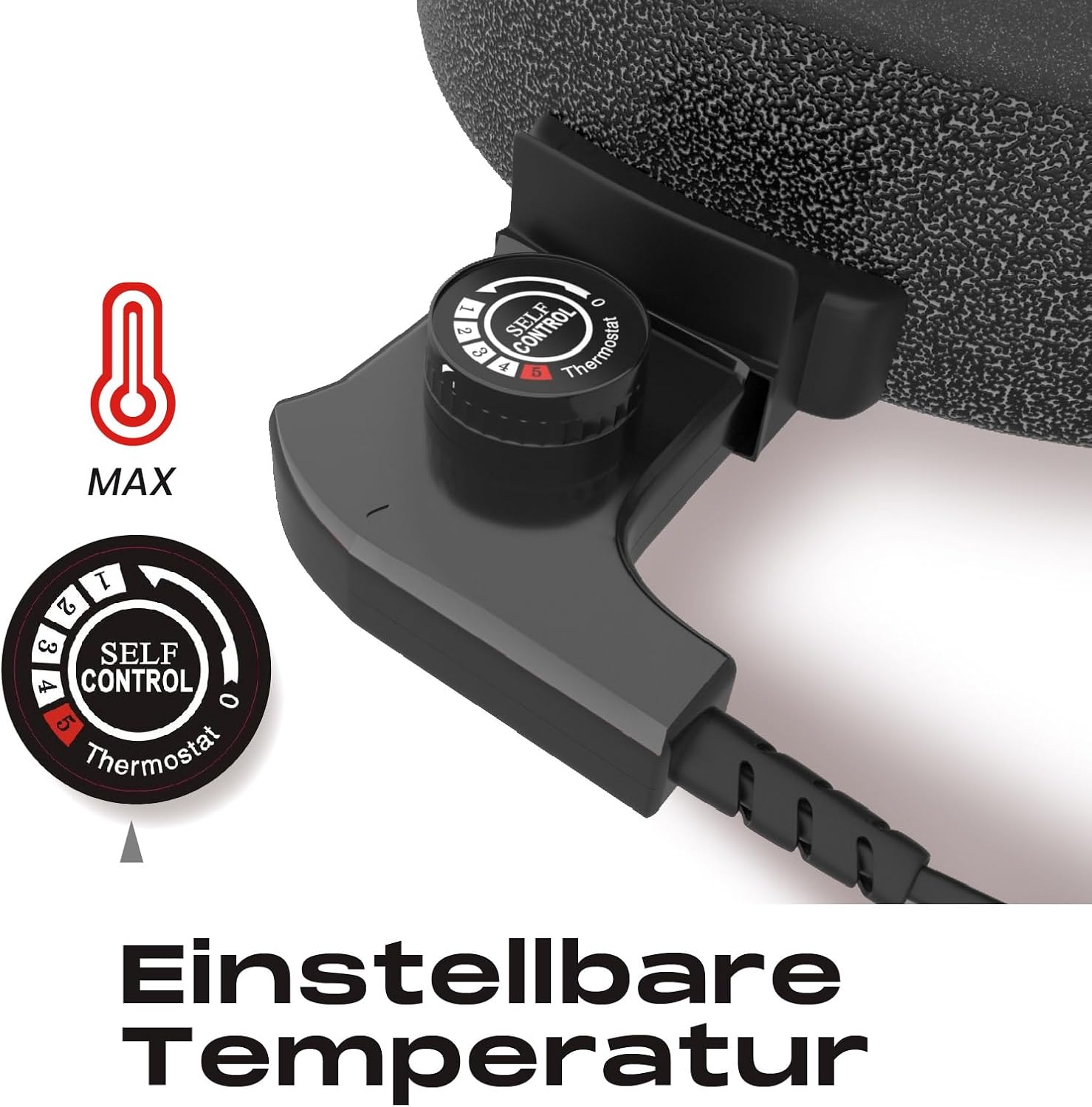 Nauwkeurige temperatuurregeling: afneembare thermostaat met traploze regeling voor perfecte resultaten bij steaks, pannenkoeken of groenten.