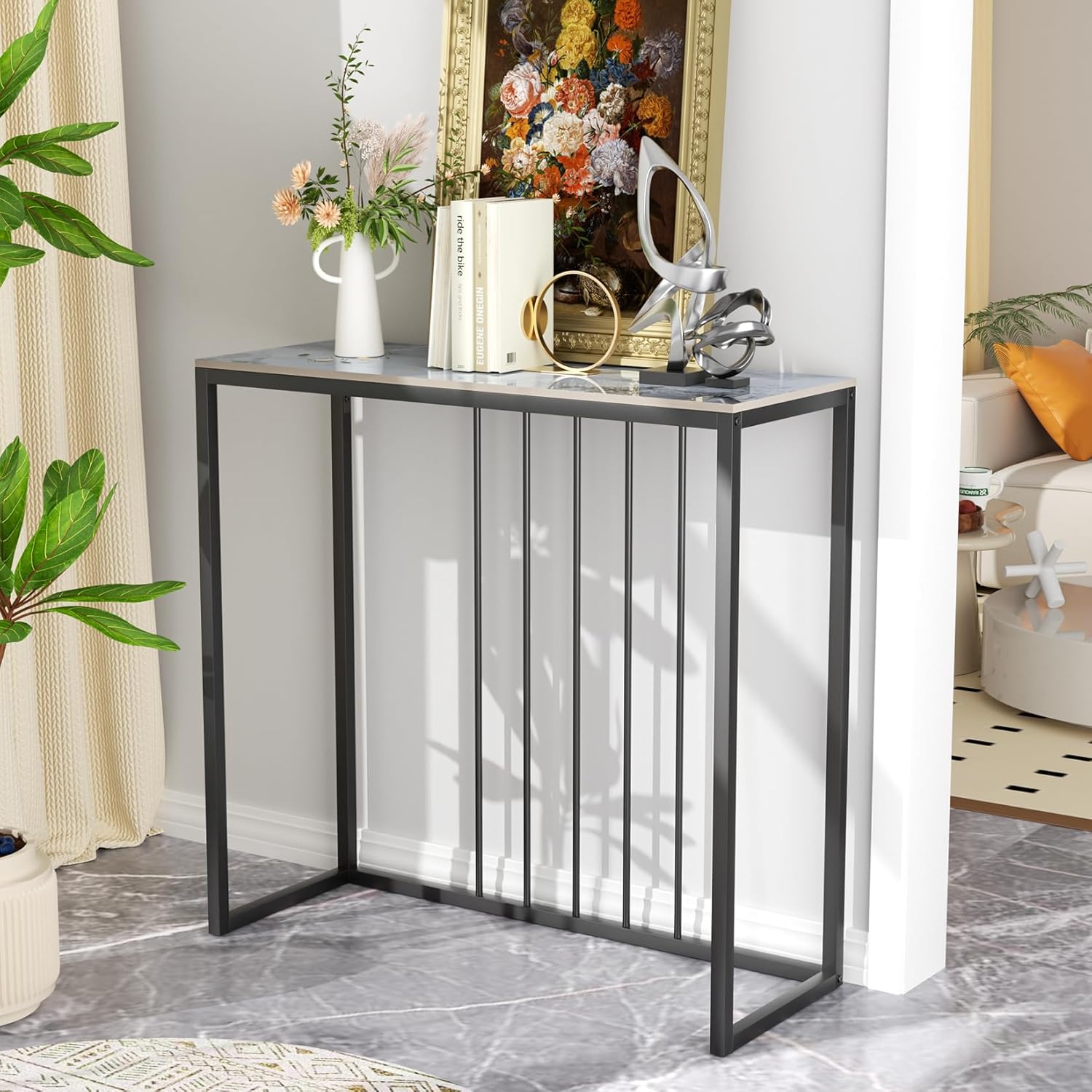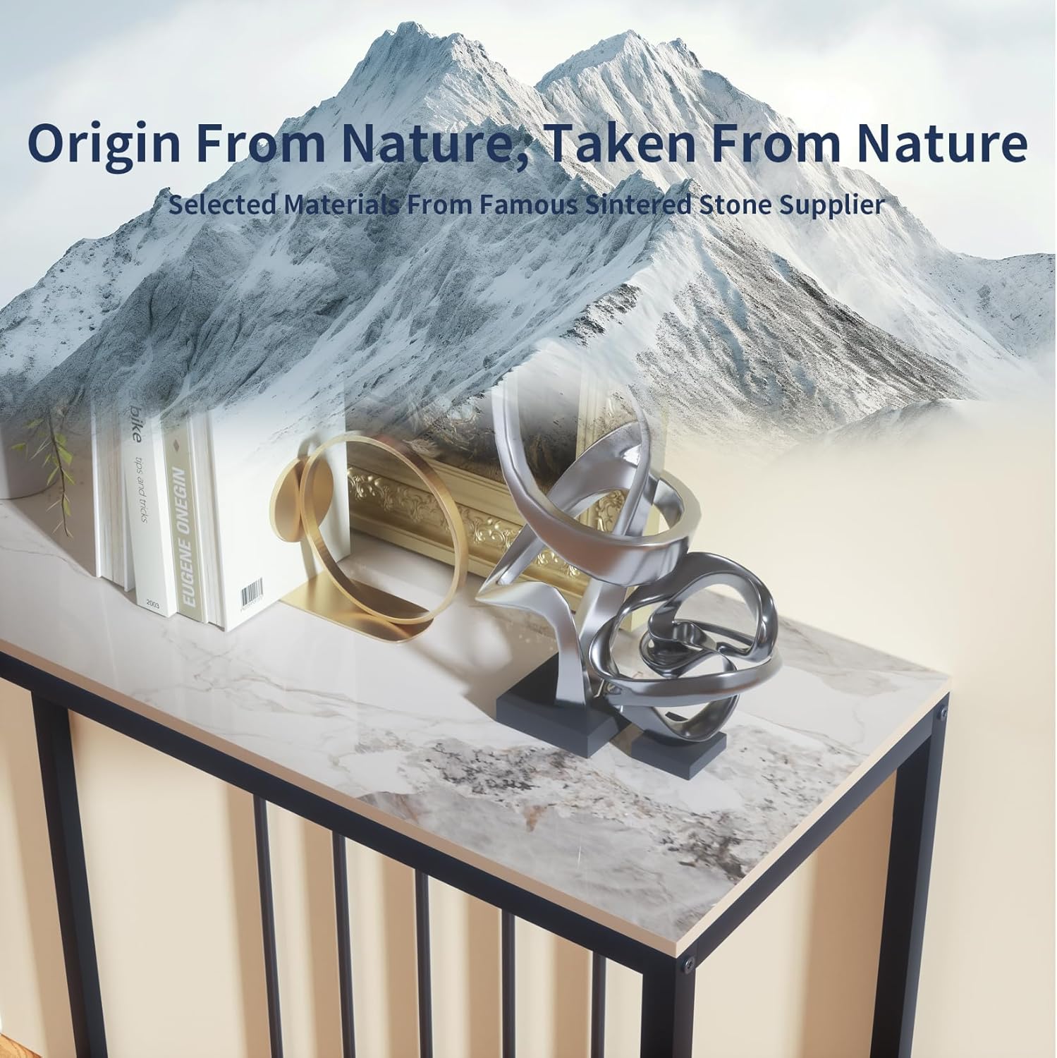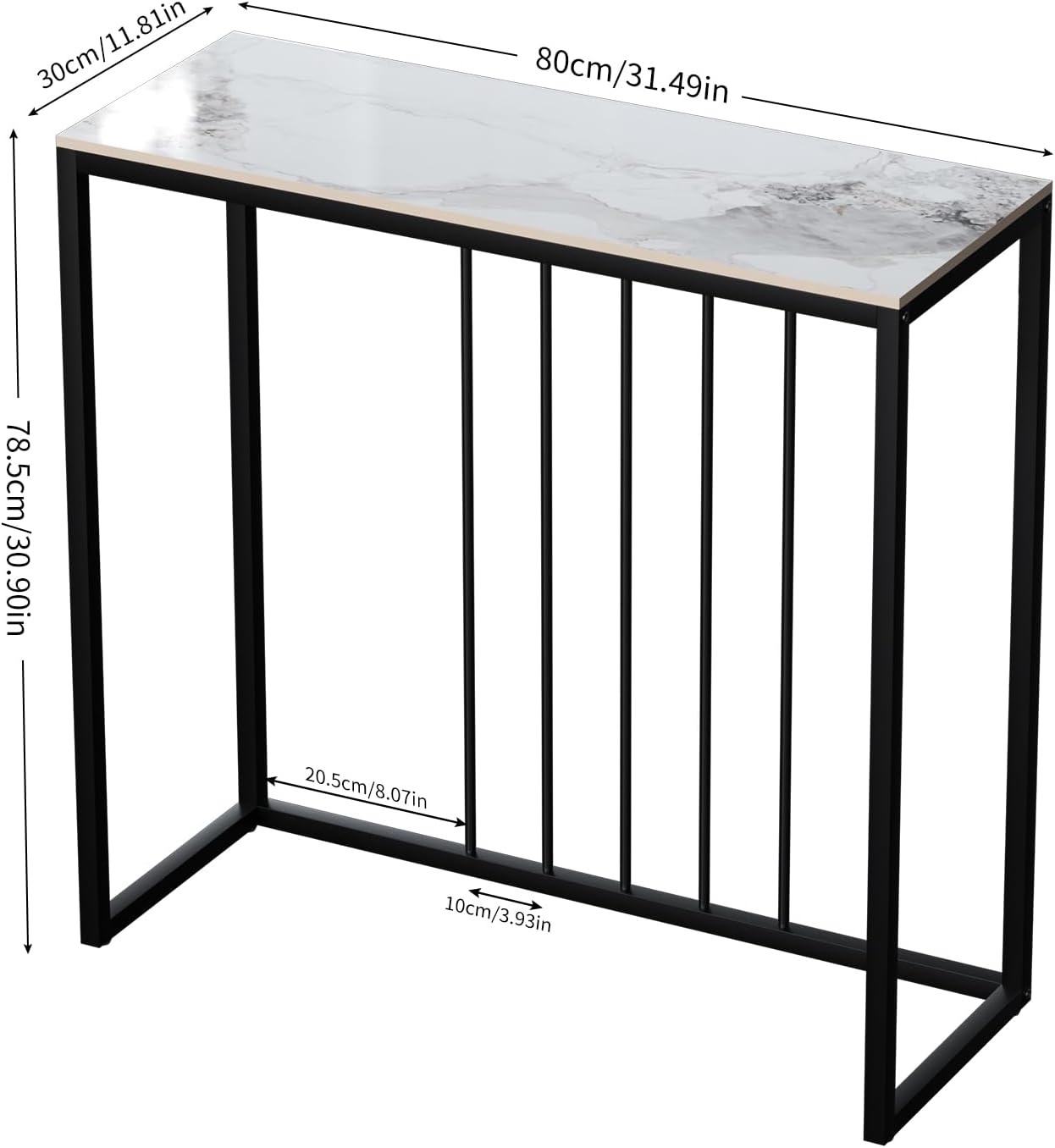 Let op: Deze tafel heeft een zwaar blad en een slank frame. Zorg ervoor dat het tegen een muur wordt geplaatst of goed verankerd is om kantelen te voorkomen. Behandel het tafelblad voorzichtig om schade te voorkomen.