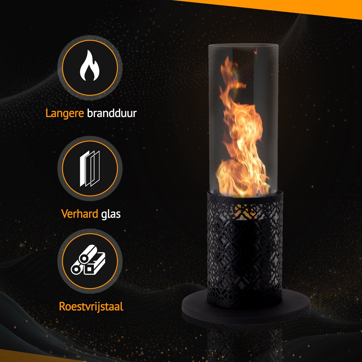 De Fiérza tafelhaard is perfect voor het creëren van een knusse sfeer in jouw huiskamer of tuin. De sfeerhaard is een decoratief en functioneel stuk dat in elke ruimte past en op een veilige manier zorgt voor een warme sfeer thuis. Het brandt rookloos en geurloos, waardoor het een uitstekende keuze is voor mensen die geen schoorsteen hebben. Daarnaast voorziet de sfeerhaard je van een heerlijke dosis warmte en dat scheelt weer in de energiekosten!