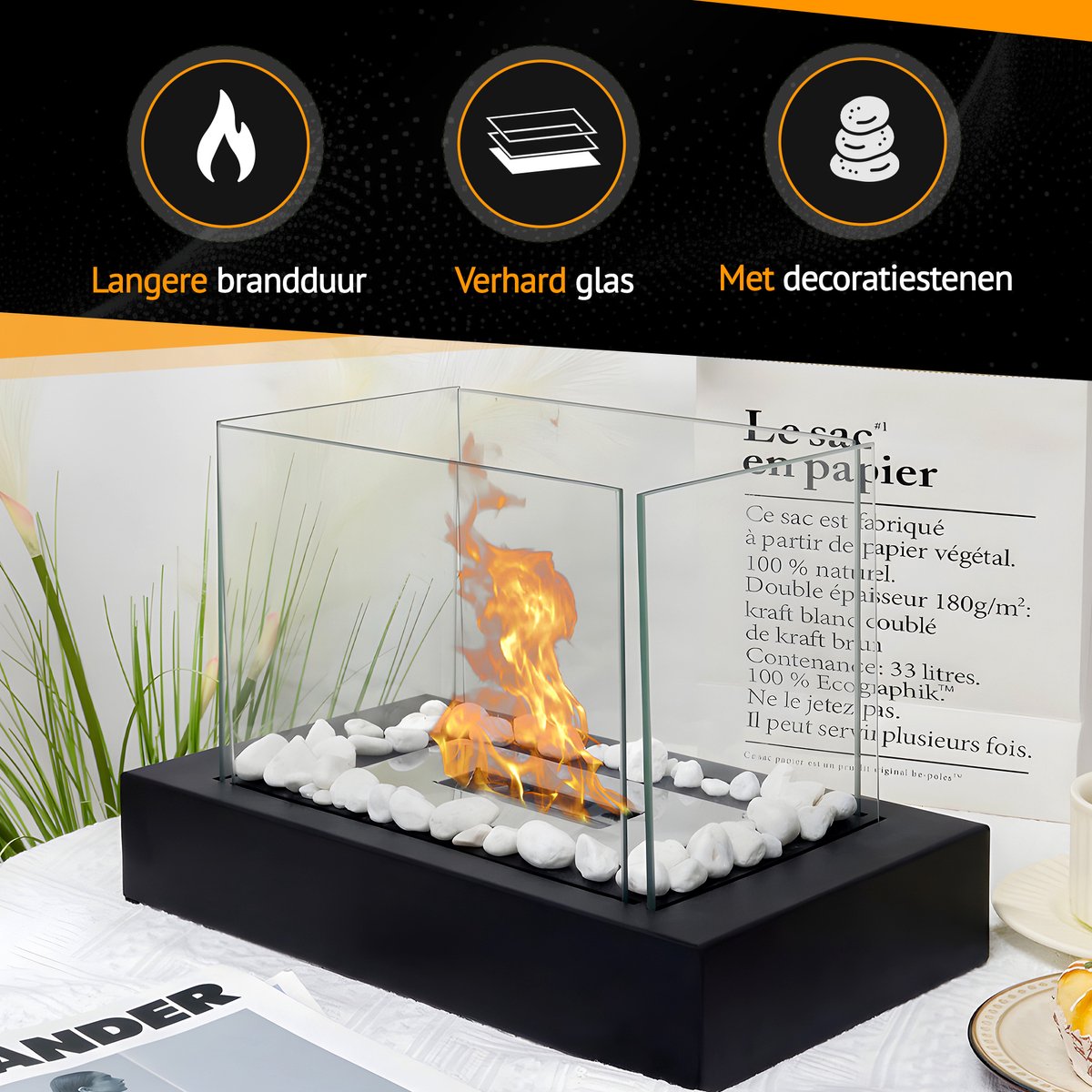 Rookloos, geurloos en schoon branden: de sfeerhaard brandt op bio-ethanol, wat betekent dat er geen rook, geur of as is. Dit maakt het een gezondere en schonere optie dan traditionele open haarden.
