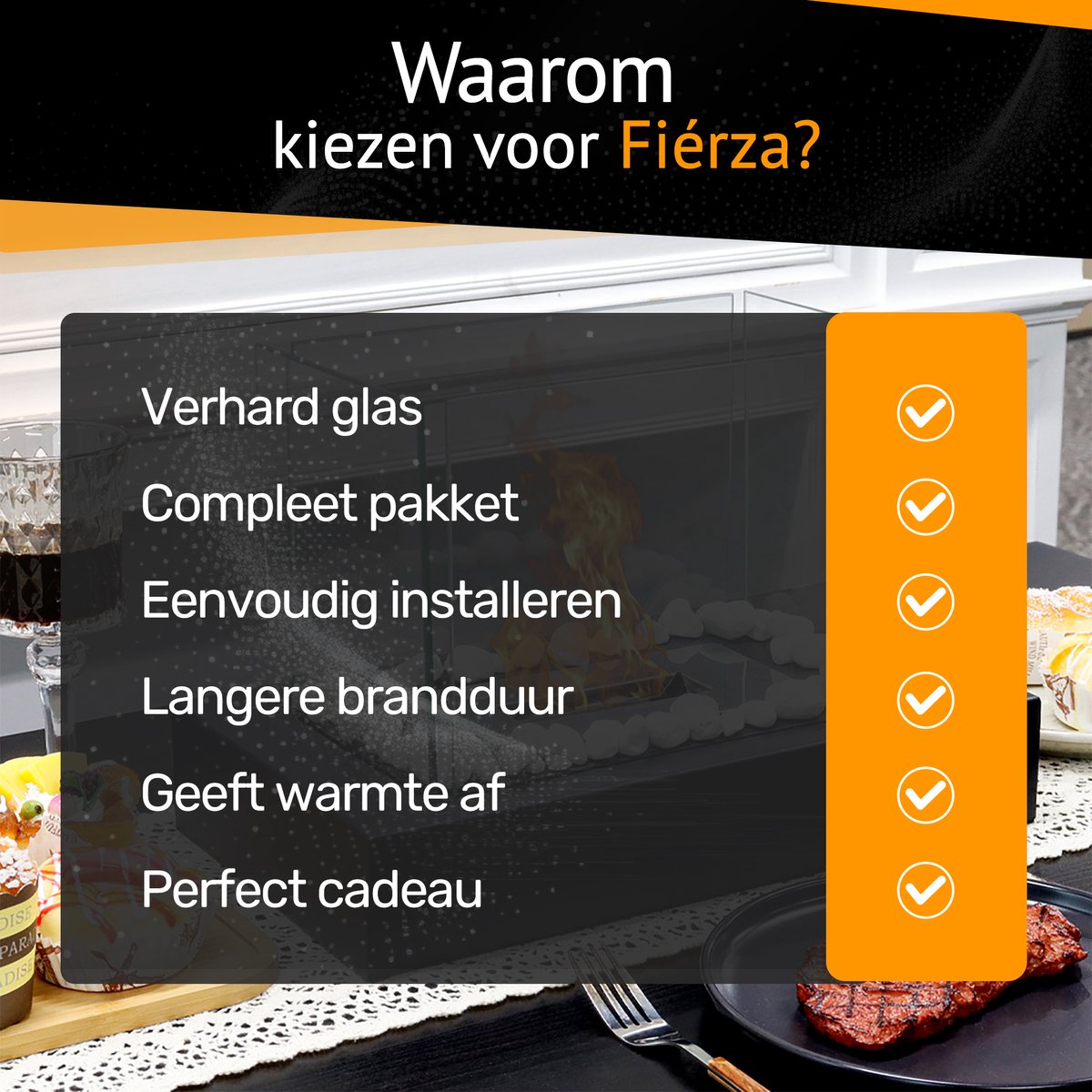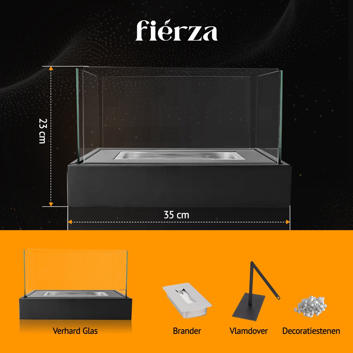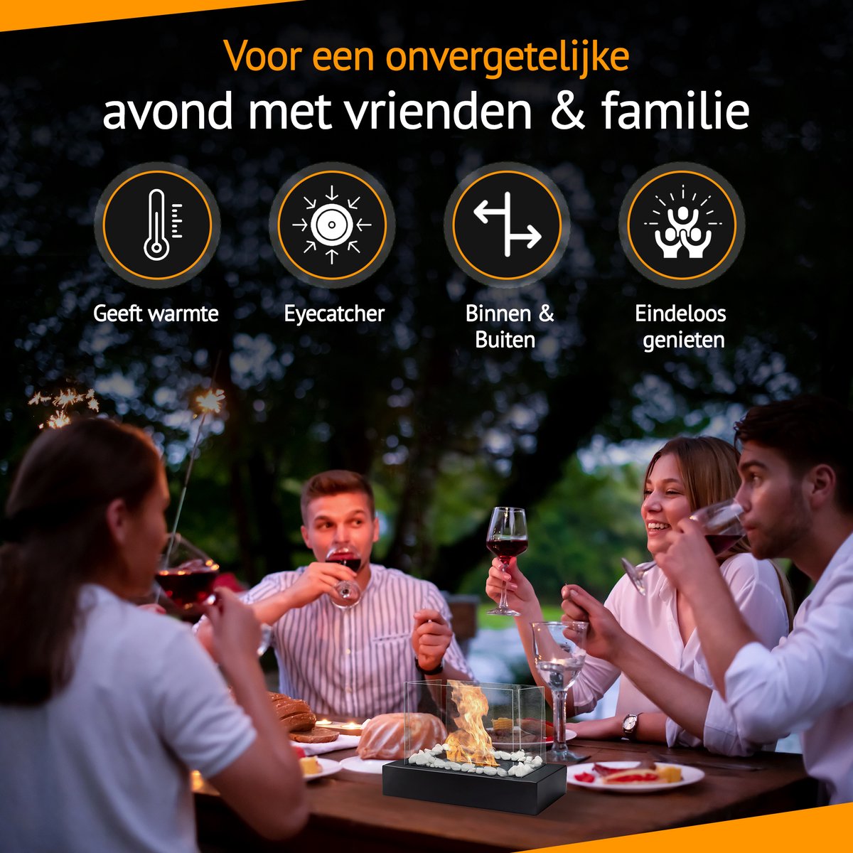 Met de Fiérza tafelhaard haal je direct een knus en stijlvol element in huis of in de tuin. Geniet van echte vlammen, zonder rook, geur of gedoe. Of het nu gaat om een gezellige avond binnen of een ontspannen moment buiten, deze sfeerhaard zorgt altijd voor de juiste sfeer. Heb je vragen of opmerkingen? Neem gerust contact met ons op via bol.com – we helpen je graag verder.