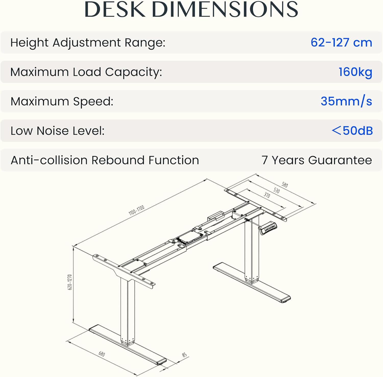 In hoogte verstelbaar van 62 cm tot 125 cm [zonder tafelblad], perfect voor bijna iedereen.