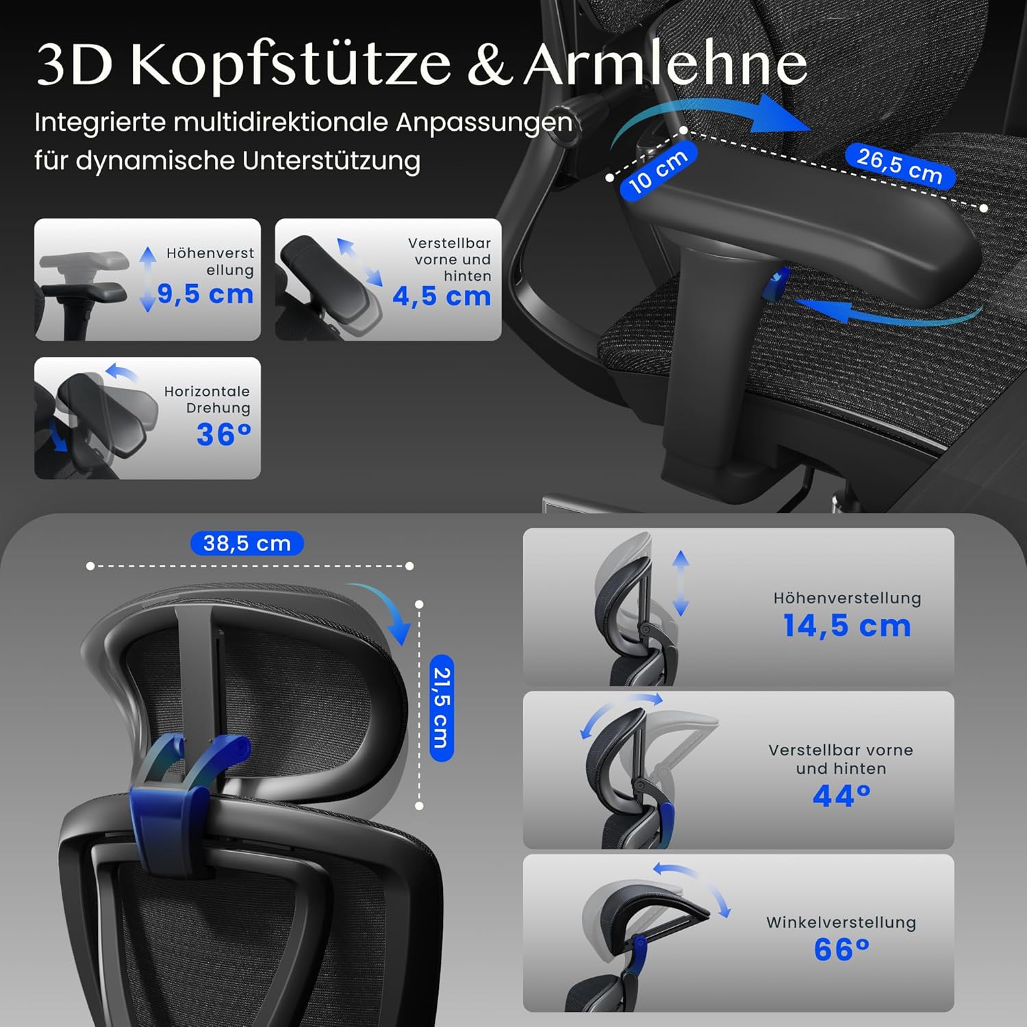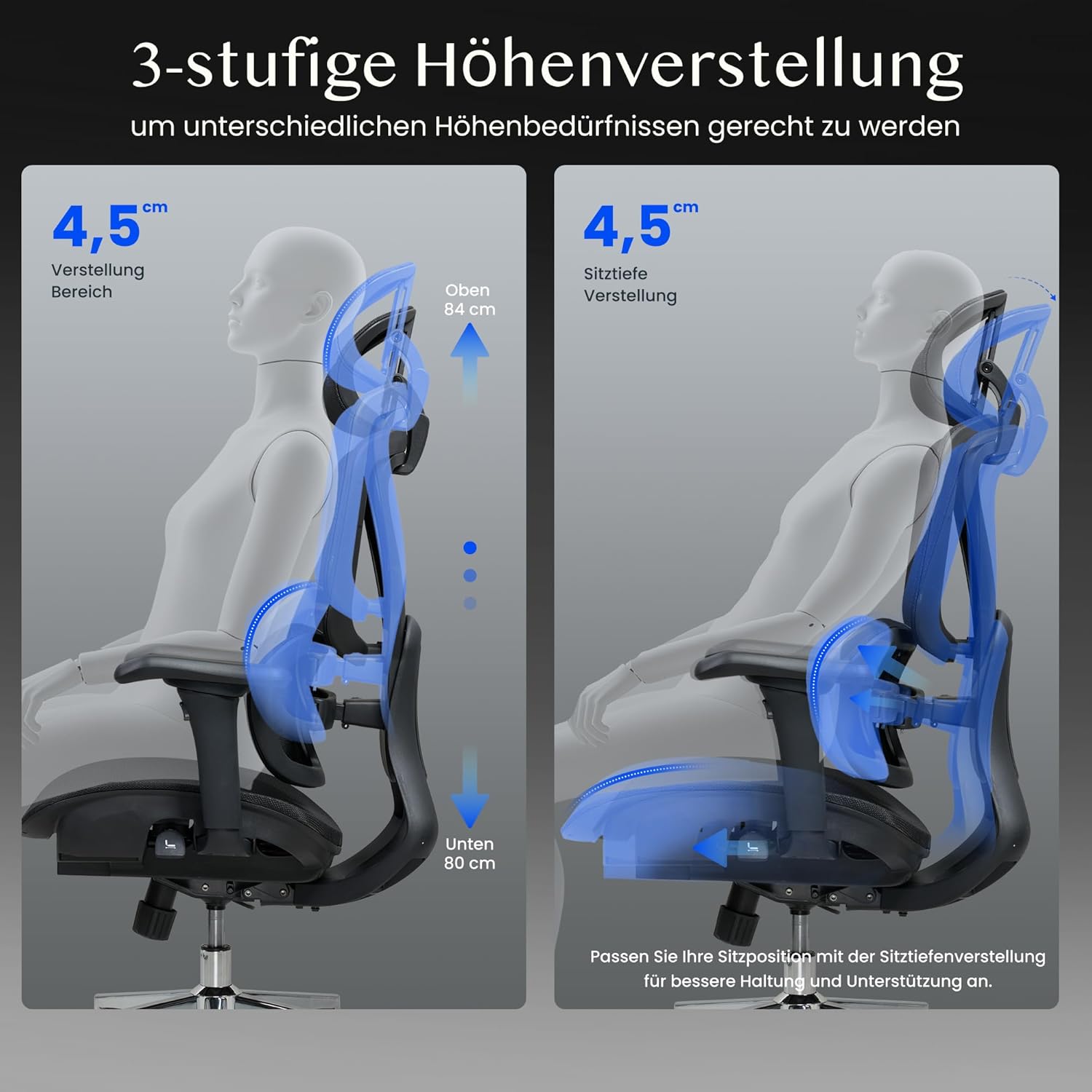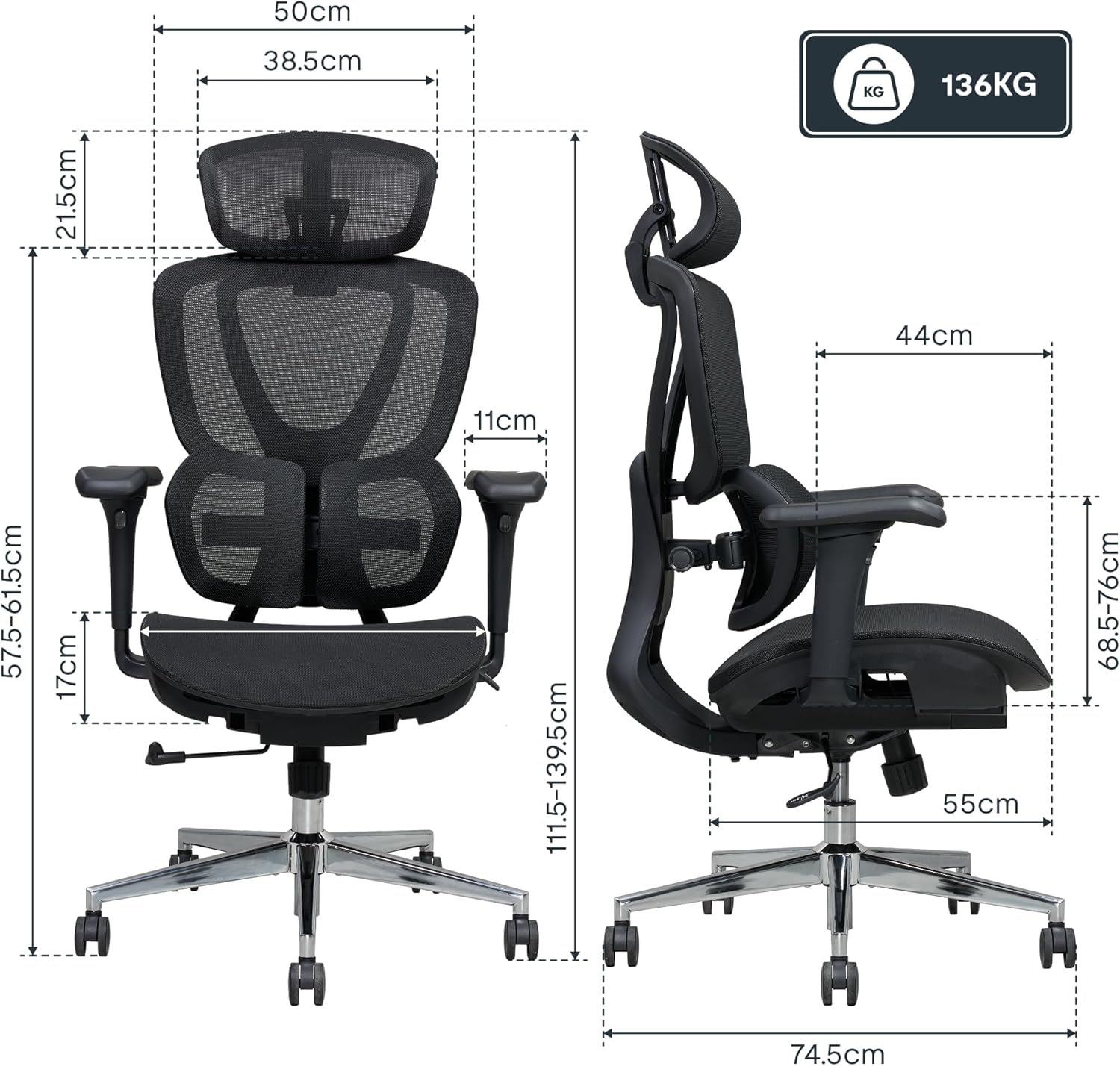 • Ergonomisch ontwerp met ademende mesh-rugleuning