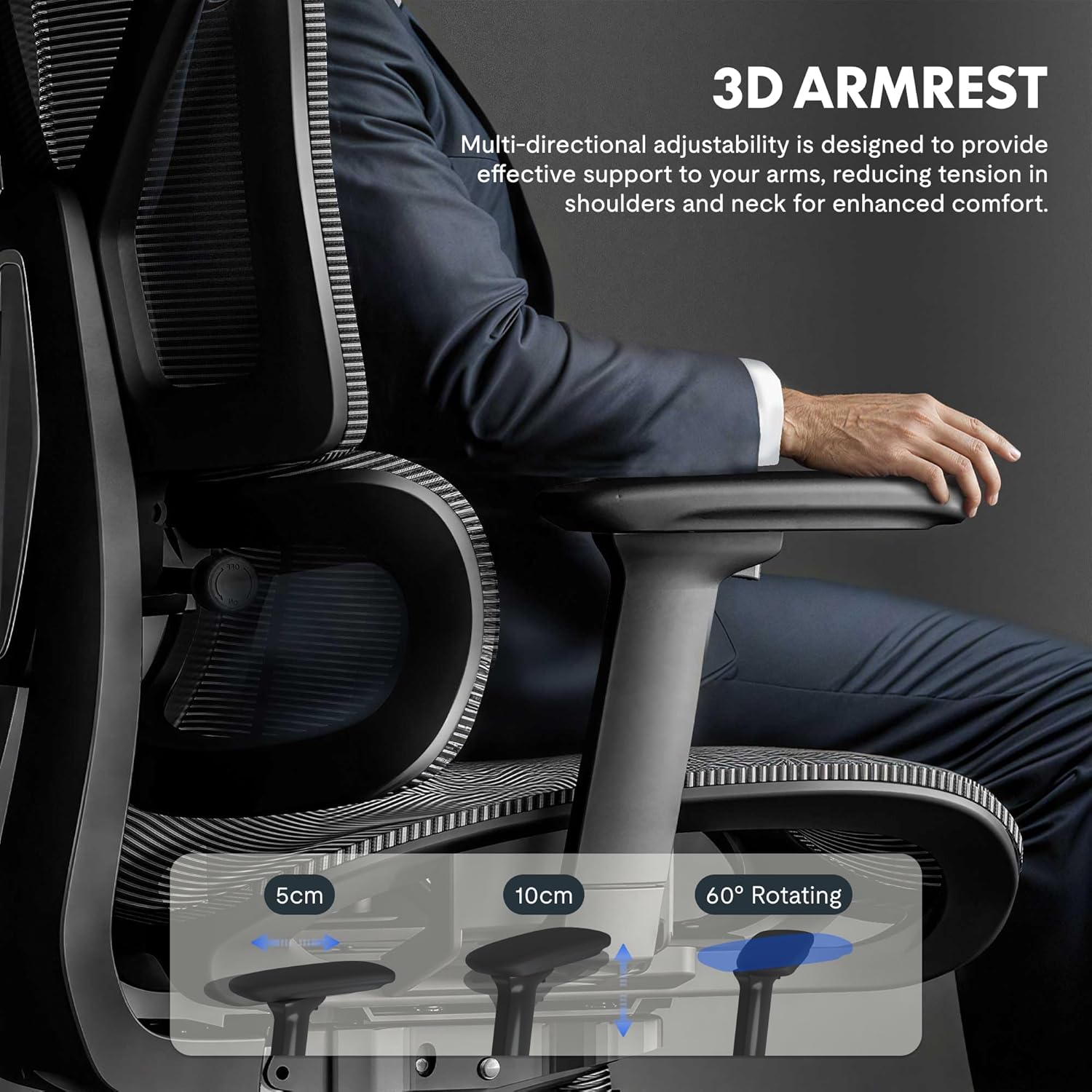 De bureaustoel is uitgerust met een ademende mesh-rugleuning die optimale ventilatie biedt, waardoor je koel en comfortabel blijft – zelfs tijdens lange werkdagen. De geïntegreerde lendensteun zorgt voor een natuurlijke zithouding en voorkomt rugklachten.