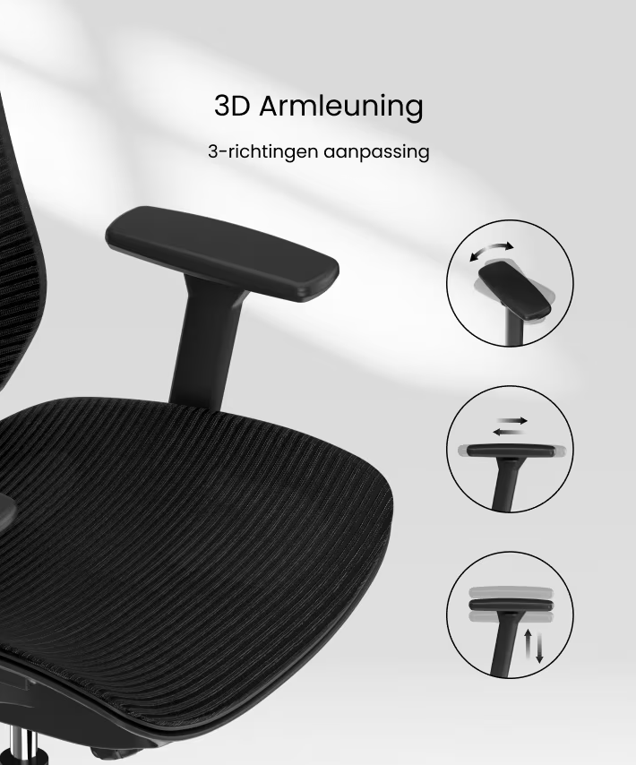 Deze ergonomische bureaustoel is van hoge kwaliteit, ontworpen om langdurig zitcomfort te bieden tijdens werk- of studiemomenten. Met zijn moderne uitstraling, duurzame materialen en doordachte afwerking is deze stoel een ideale keuze voor wie waarde hecht aan zowel comfort als stijl.