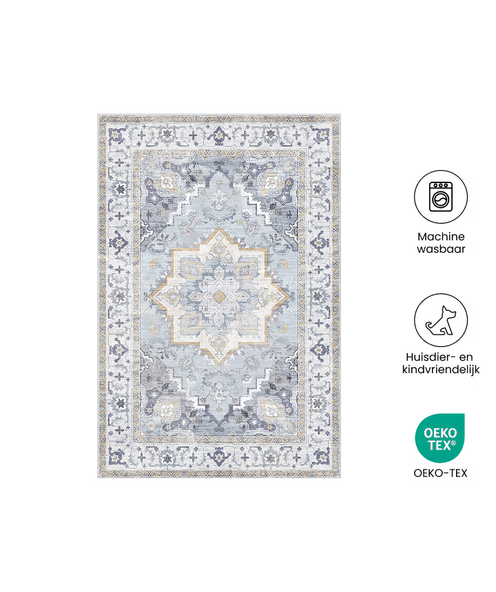 Onze tapijten zijn gemaakt van OEKO-TEX® gecertificeerde materialen en zijn vrij van schadelijke stoffen. Het laagpolige oppervlak is hypoallergeen en helpt stof en dierenharen op afstand te houden.