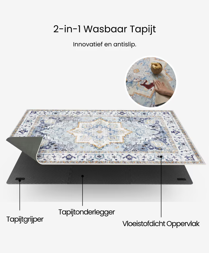 Machinewasbaar Geen stress meer over vlekken of vuil – gooi het gewoon in de was. Onze tapijten zijn gebouwd om het echte leven aan te kunnen, was na was.