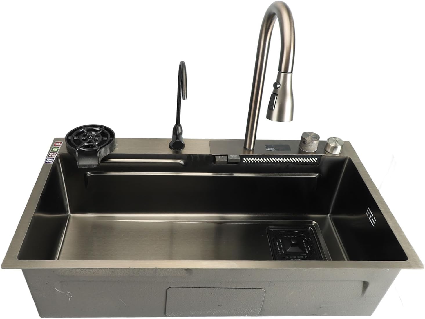 4. Fijn vakmanschap: De dubbele spoelbak met digitaal display maakt gebruik van verdikte geborstelde oppervlaktetechnologie, een verfijnde en elegante uitstraling, wat het algehele esthetische gevoel van de keuken verbetert.