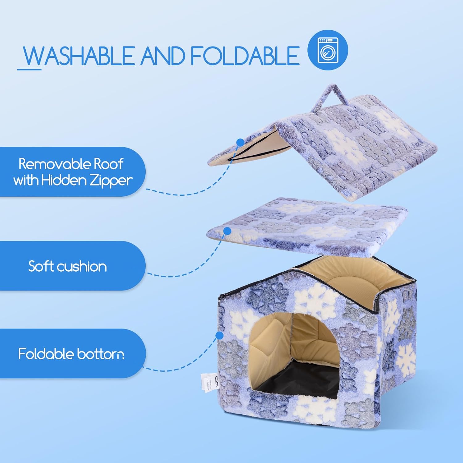 Zelfverwarmend materiaal: voornamelijk gemaakt van zachte stof, koraalfluweel, arctisch fluweel en zeer elastisch schuim, zeer zacht en warm om uw huisdier te beschermen tegen de kou.