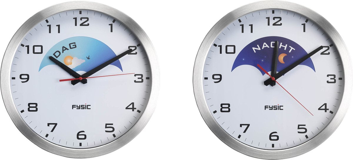 De dementieklok geeft een duidelijk verschil tussen dag en nacht aan door verschillende beelden weer te geven. In de ochtend toont de klok vogels en een opkomende zon, terwijl er in de avond sterren en een maan verschijnen. Zo is het meteen duidelijk welk dagdeel het is. De Fysic FK150 beschikt over een aluminium behuizing.