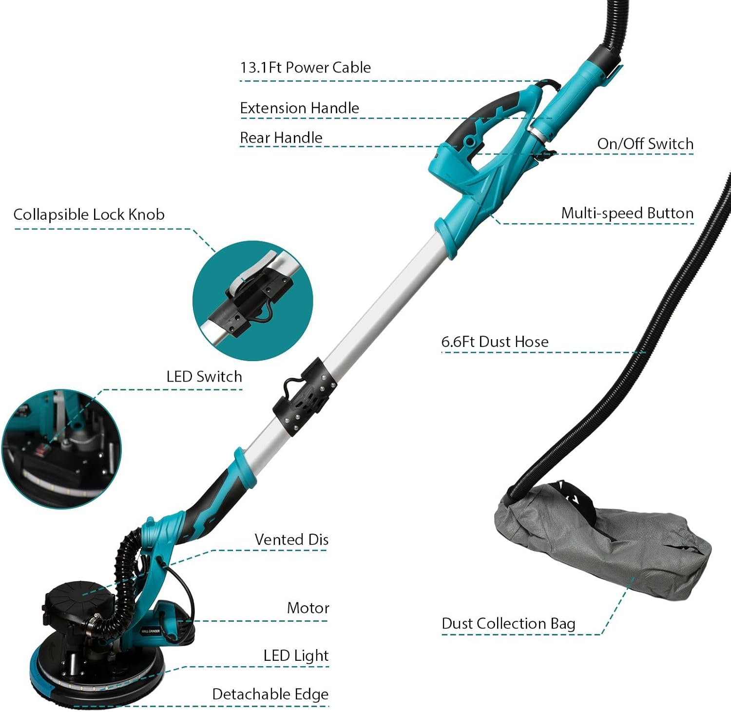 Leveringsomvang: 1250 W gipsplaatschuurmachine, 6 schuurschijven, verlengstuk, 2 m stofslang, stofzak, werkhandschoenen, veiligheidsbril, inbussleutel, schroevendraaier, koolborstel, schijfreiniger, stofslangreiniger, gebruiksaanwijzing