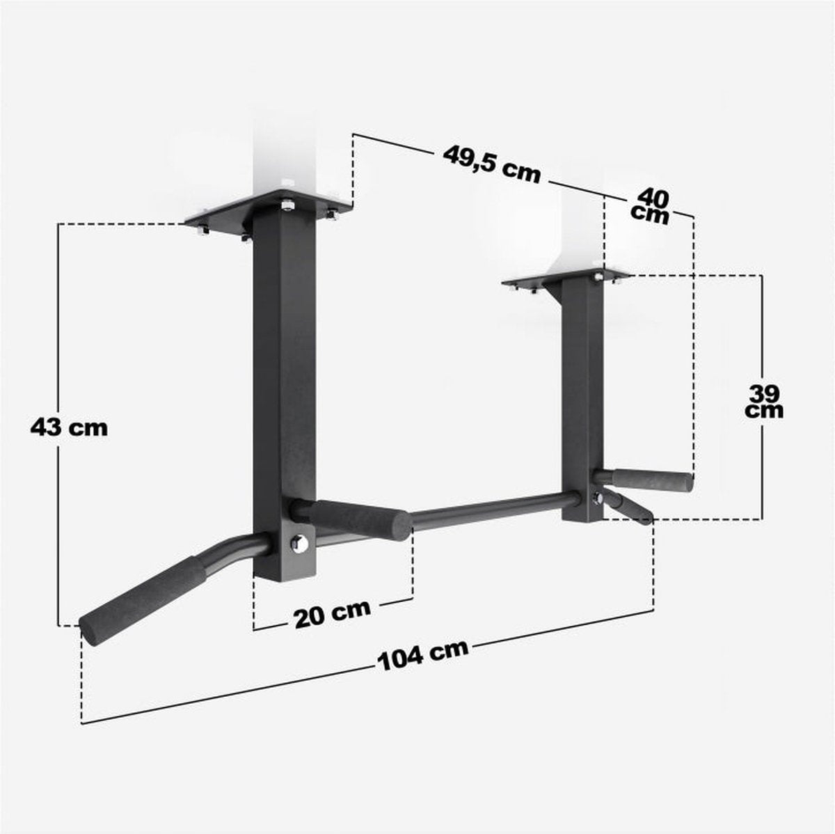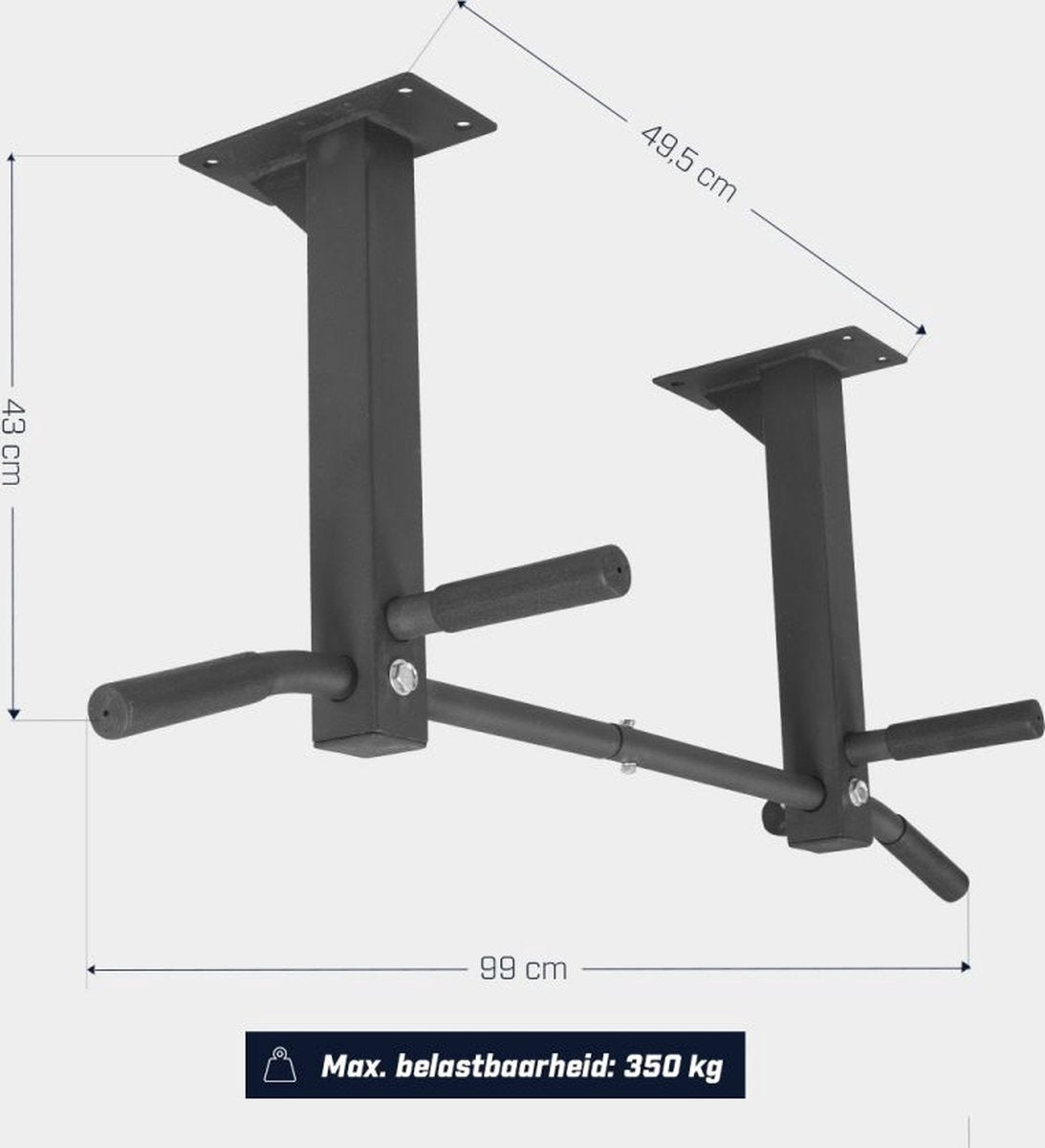 Deze multifunctionele optrekstang (dakmontage) is ideaal voor chin ups, pull ups en leg raises (rugspieren, biceps, buikspieren). Deze optrekstang van sportschoolkwaliteit is maximaal te belasten tot 350 kg en wordt geleverd inclusief schroeven en pluggen.