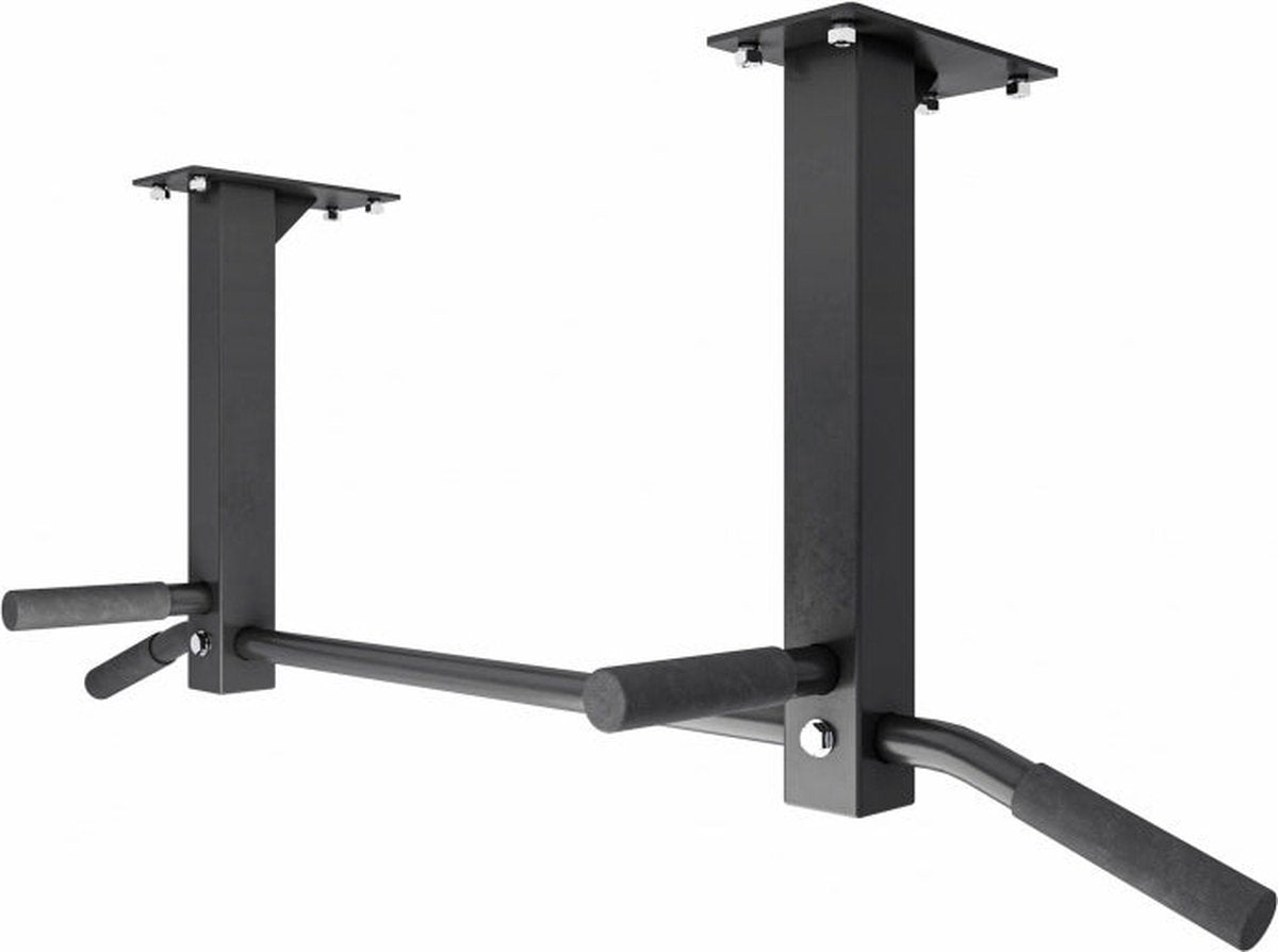 Deze multifunctionele optrekstang is er één voor de echte 'die-hards', die vaak willen trainen, en het dus geen probleem vinden om het apparaat thuis aan het plafond te monteren. Het voordeel van dit multifunctionele apparaat ten opzichte van een deurstang, is het feit dat je hem lekker hoog ophangt, zodat je normaal gesproken, zelfs als je je benen strekt, de grond niet raakt ('cheaten' bij het uitvoeren van je oefeningen, wordt daardoor onmogelijk!).