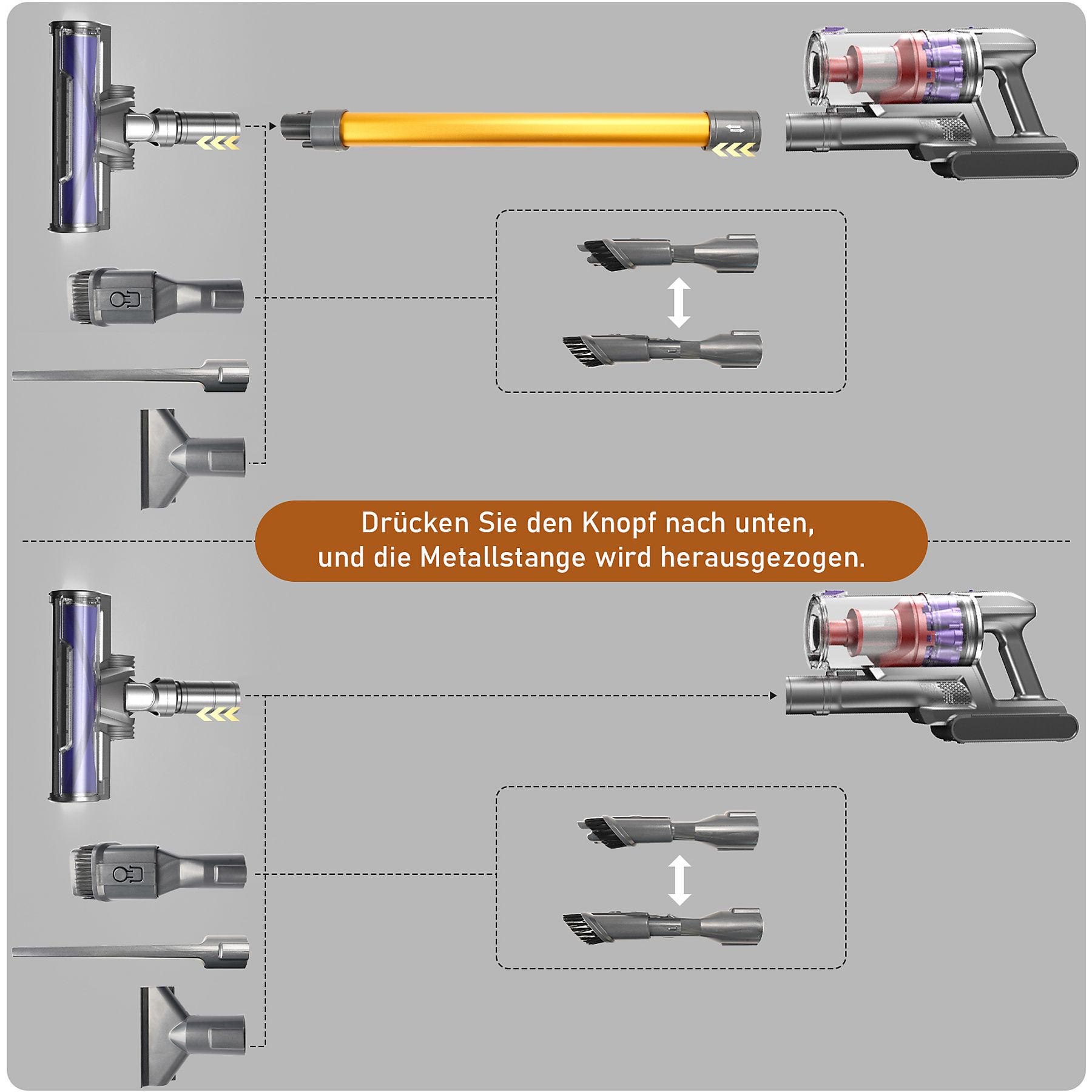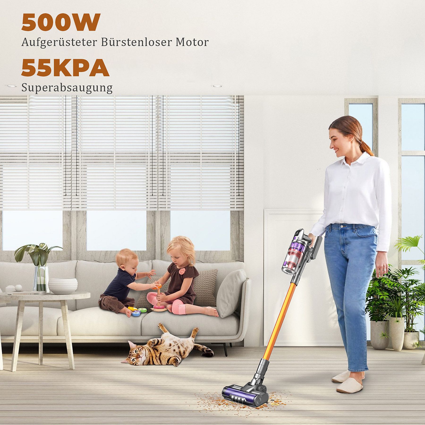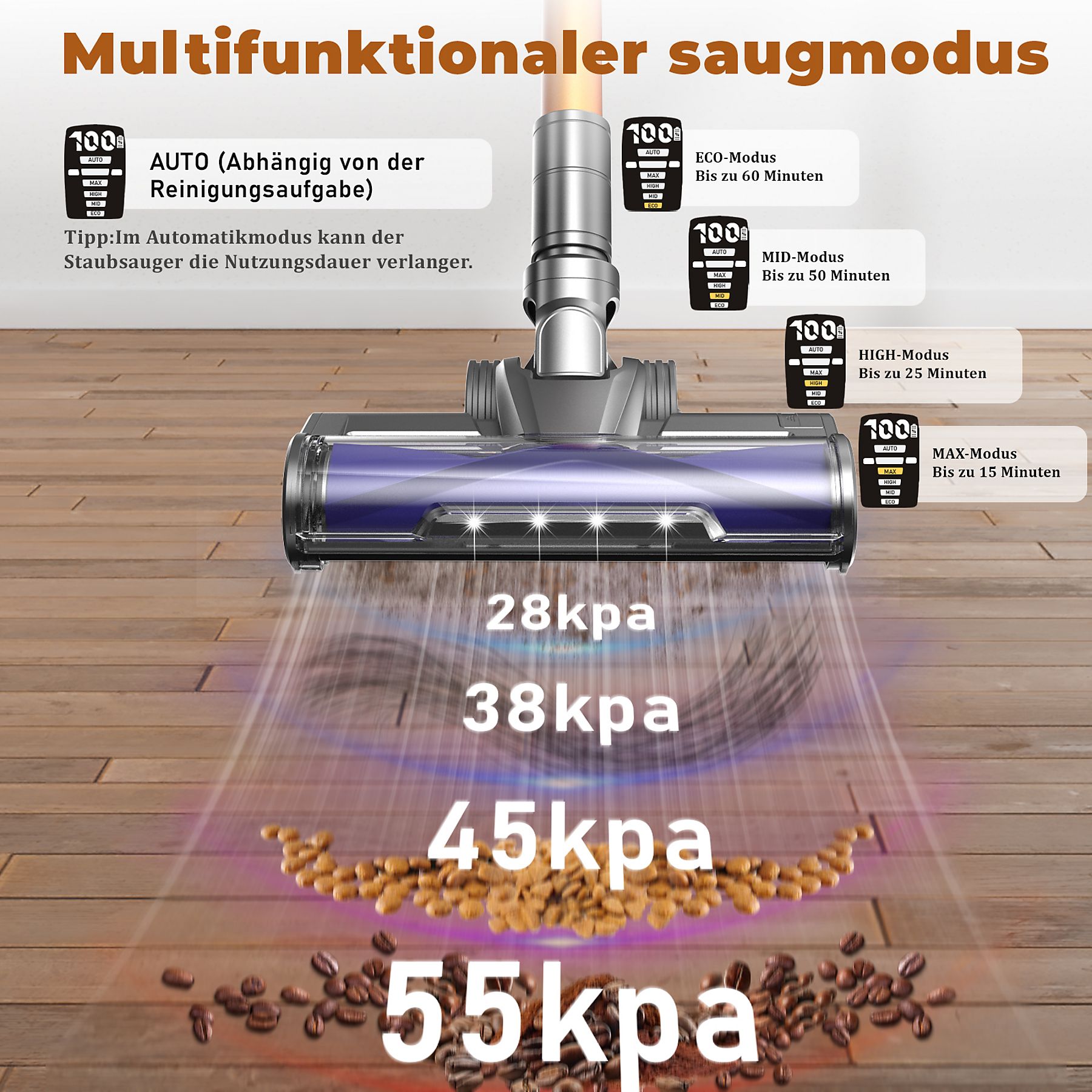 De draadloze stofzuiger is uitgerust met een 550W-motor die een zuigkracht van 55.000 Pa kan leveren. Speciale geluidsreductietechnologie (noise)
