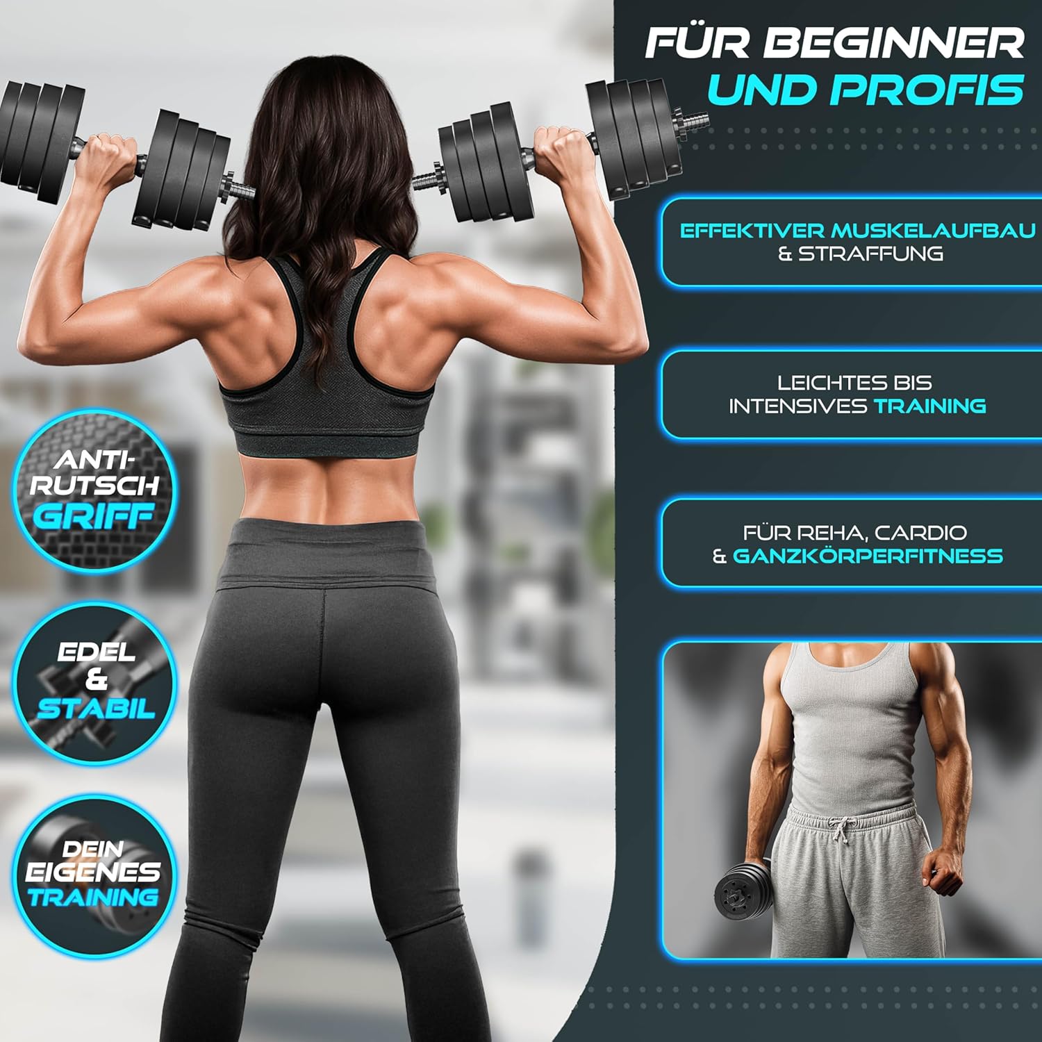Veilige training – ook thuis: dankzij de 4 antislip stersluitingen en extra borgringen blijven alle halterschijven stevig vastgezet. De halter biedt maximale veiligheid. Geen wiebelen, geen wegglijden – alleen volledige controle tijdens het trainen.