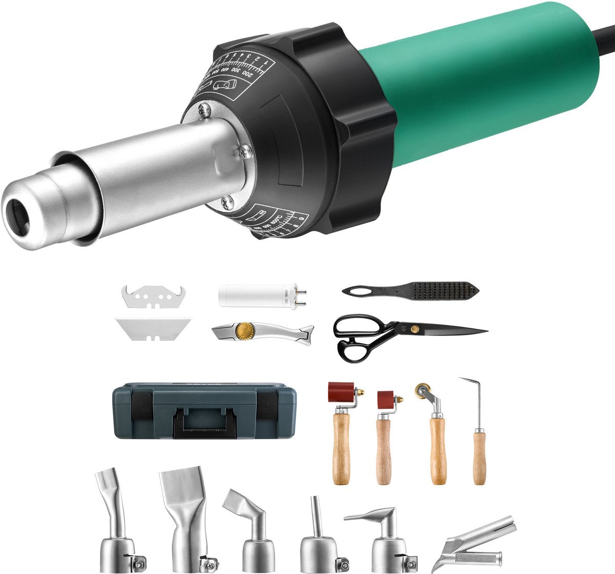 De heteluchtlasmachine voor kunststof is uitgerust met een krachtige 1600W zuiver koperen motor die zorgt voor snelle opwarming en efficiënt lassen. Wordt geleverd met een professionele kunststof lasset (met 17 accessoires). Dankzij de temperatuurregeling met 9 standen, efficiënte koeling en een lang snoer is dit apparaat perfect voor zowel beginners als professionals.