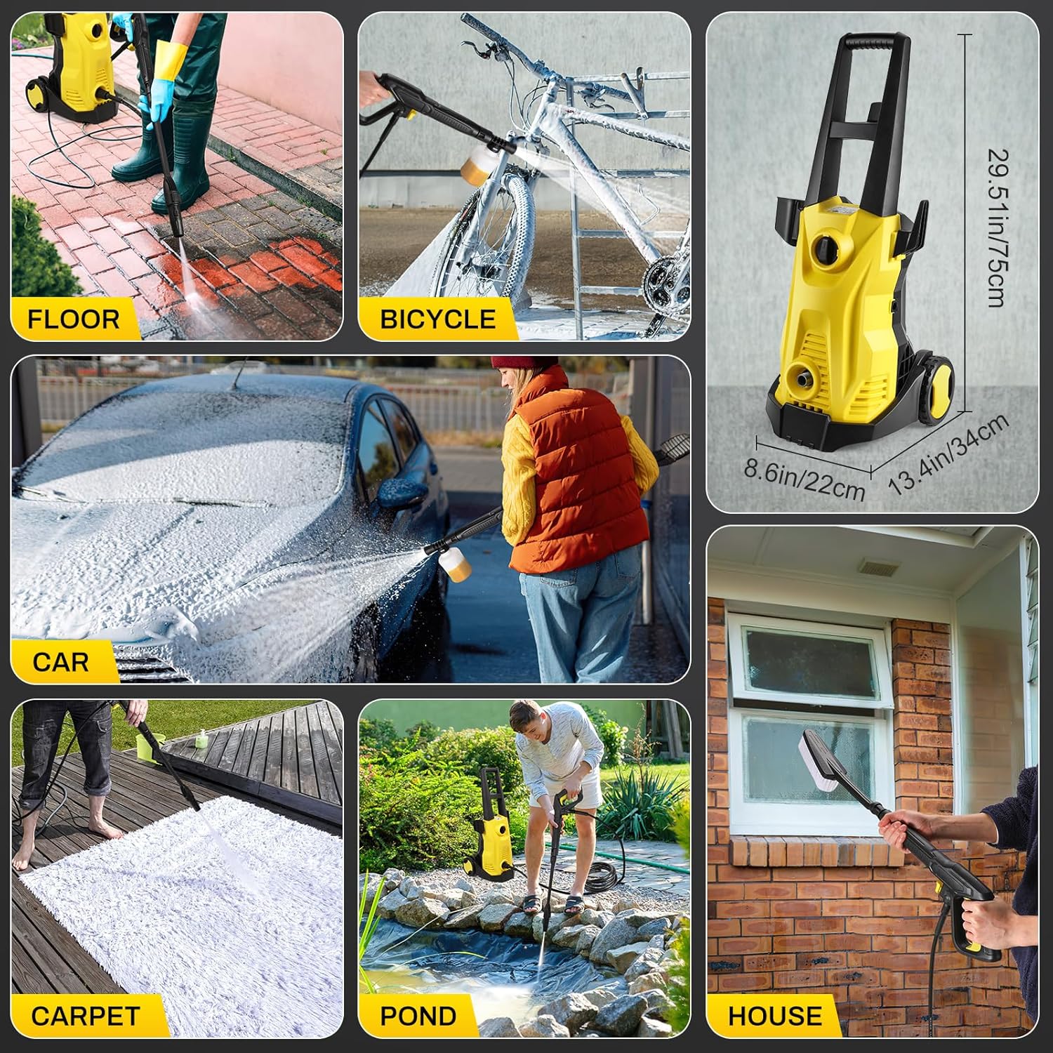 Veiligheidsontwerp: de elektrische hogedrukreiniger is IPX5 waterdicht en heeft een geïntegreerde oververhittingsbeveiliging die het apparaat automatisch uitschakelt wanneer de motor oververhit raakt om schade aan het apparaat door hoge temperaturen te voorkomen.