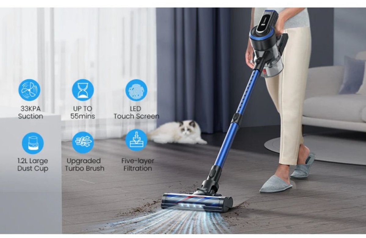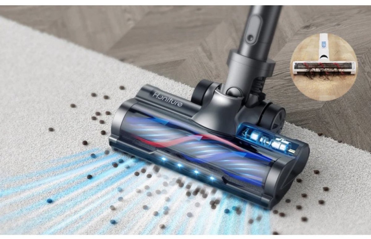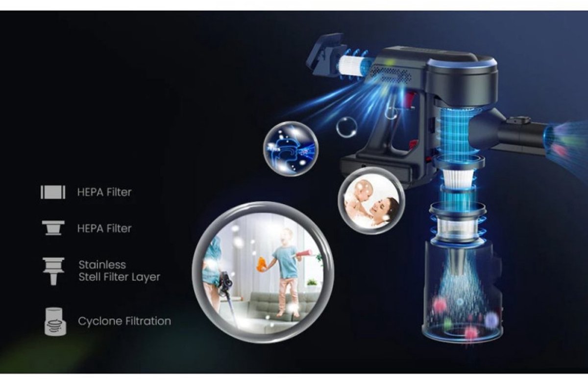 Ervaar de toekomst van schoonmaken met onze geavanceerde stofzuiger met een slank LED-scherm. Dit intuïtieve display geeft realtime updates over de levensduur van de batterij, zuigkracht en schoonmaakstanden, zodat je volledige controle hebt over je schoonmaakervaring.