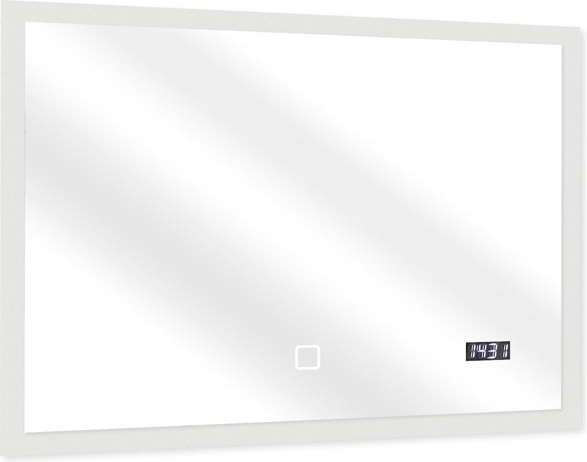 - Afmetingen: deze led-badkamerspiegel is verkrijgbaar in 80 x 60 cm. In ingebouwde toestand is hij slechts 31 mm van de muur verwijderd