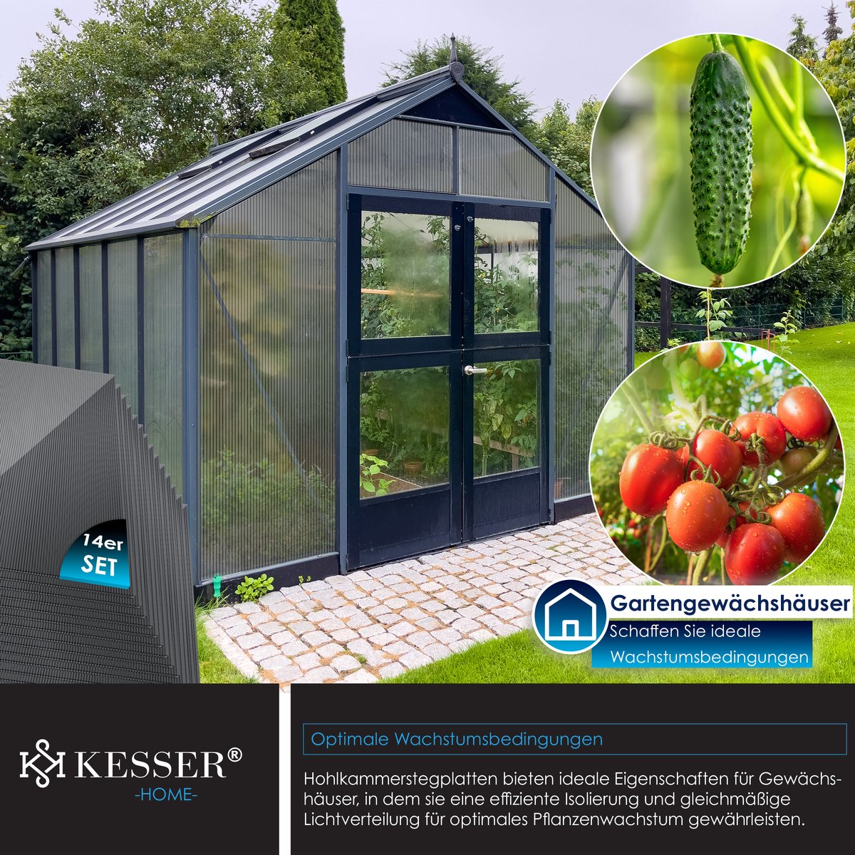 KESSER dubbelwandige platen zijn slagvast en UV-bestendig, speciaal ontworpen voor kassen, eenvoudige installatie dankzij op maat te snijden platen.