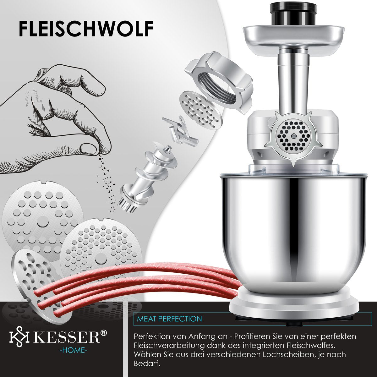 KESSER® 3-in-1 keukenmachine - Kneedmachine - 5,5L - Zilver