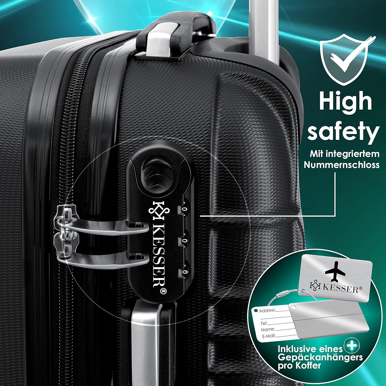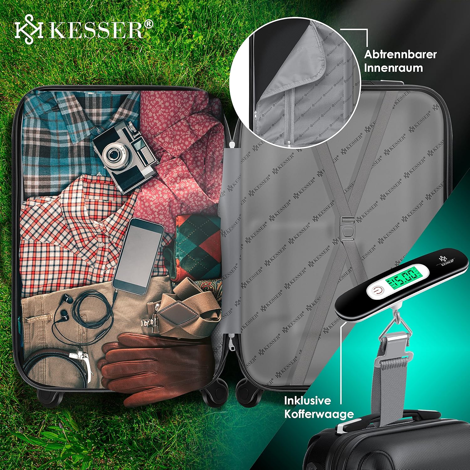 KESSER 4-delige reiskofferset, stapelbaar, 360° wielsysteem voor eenvoudige bediening, hoge duurzaamheid en laag gewicht.