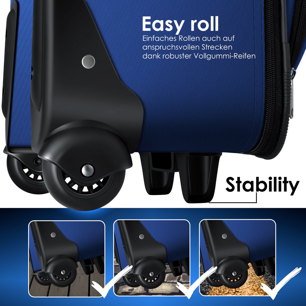 De 4-delige kofferset van KESSER laat niets te wensen over op het gebied van comfort! Vervoer uw reisbenodigdheden snel en gemakkelijk dankzij de massief rubberen banden en telescoopstang. De nauwsluitende koffers beschermen de inhoud dankzij de veilige en hoogwaardige afwerking.