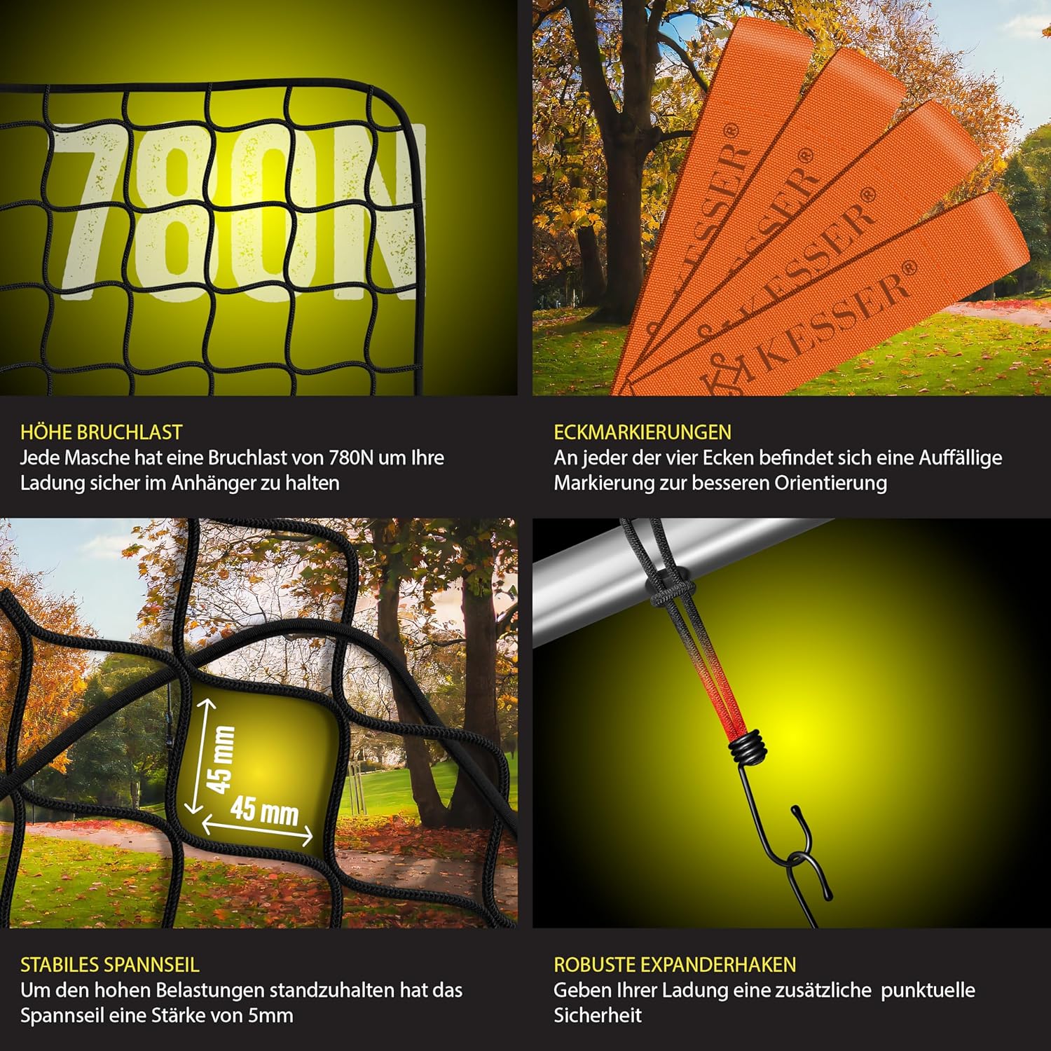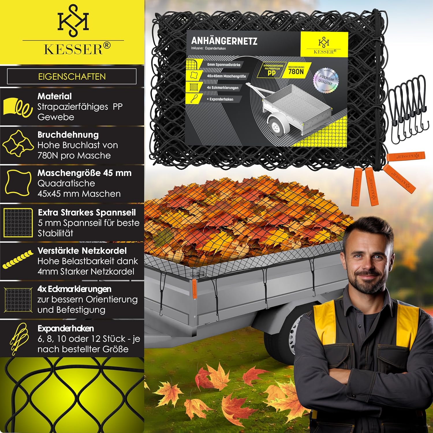 Betrouwbare bescherming voor je transport: het KESSER aanhangernet biedt een veilige en betrouwbare beveiliging van je lading tijdens het transport van A naar B. Of het nu gaat om tuinafval, bouwmaterialen of andere goederen, met dit afdeknet transporteer je veilig en eenvoudig. Profiteer van de voordelen van betrouwbare beveiliging en stressvrij transport.