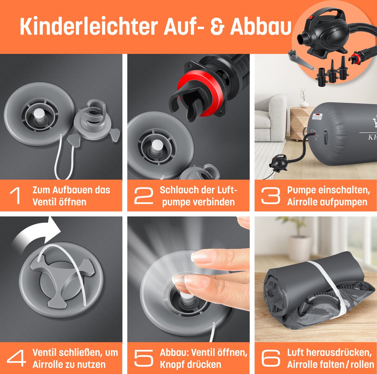 KESSER Airrolle met Versterkte Naden voor Veiligheid, Elektrische Luchtpomp Inbegrepen, Duurzame Handvatten, PVC Materiaal voor Langdurige Luchtdichtheid, Premium Hogedrukventiel, Stressverlichting, Robuustheid, Hoge Draagkracht en Langdurige Luchtdichtheid
