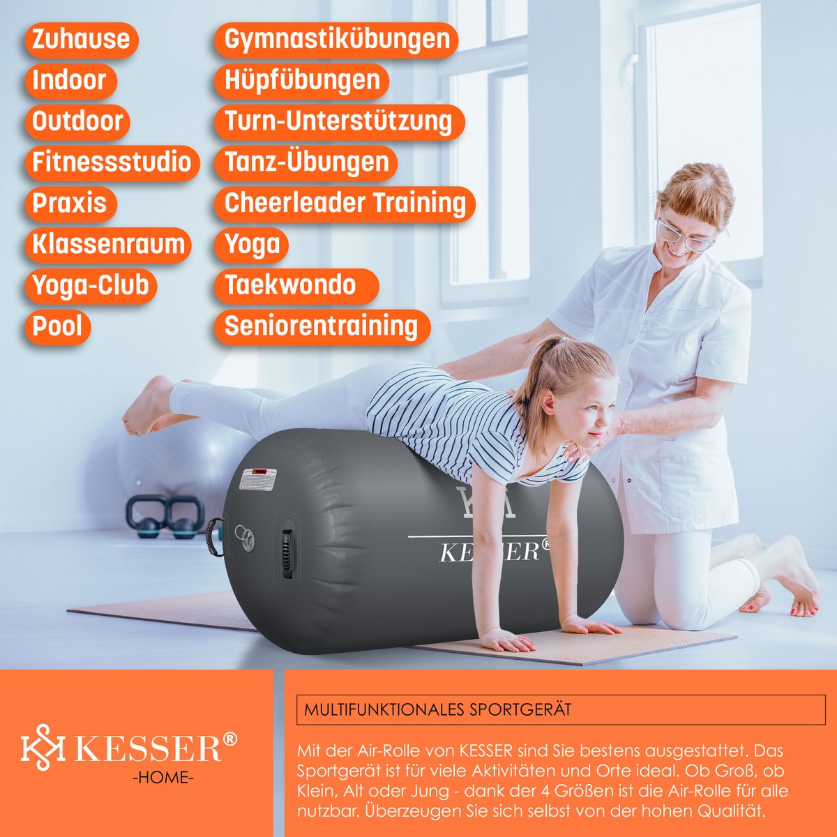 De KESSER Airrolle is verkrijgbaar in vier verschillende maten, waardoor hij geschikt is voor mensen van alle leeftijden en lichaamsgroottes. Of u nu een kind, een volwassene of een sporter bent, deze rol past perfect bij u. Hij is ideaal voor yoga, pilates, kickboksen, gymnastiek en vele andere fitnessoefeningen.