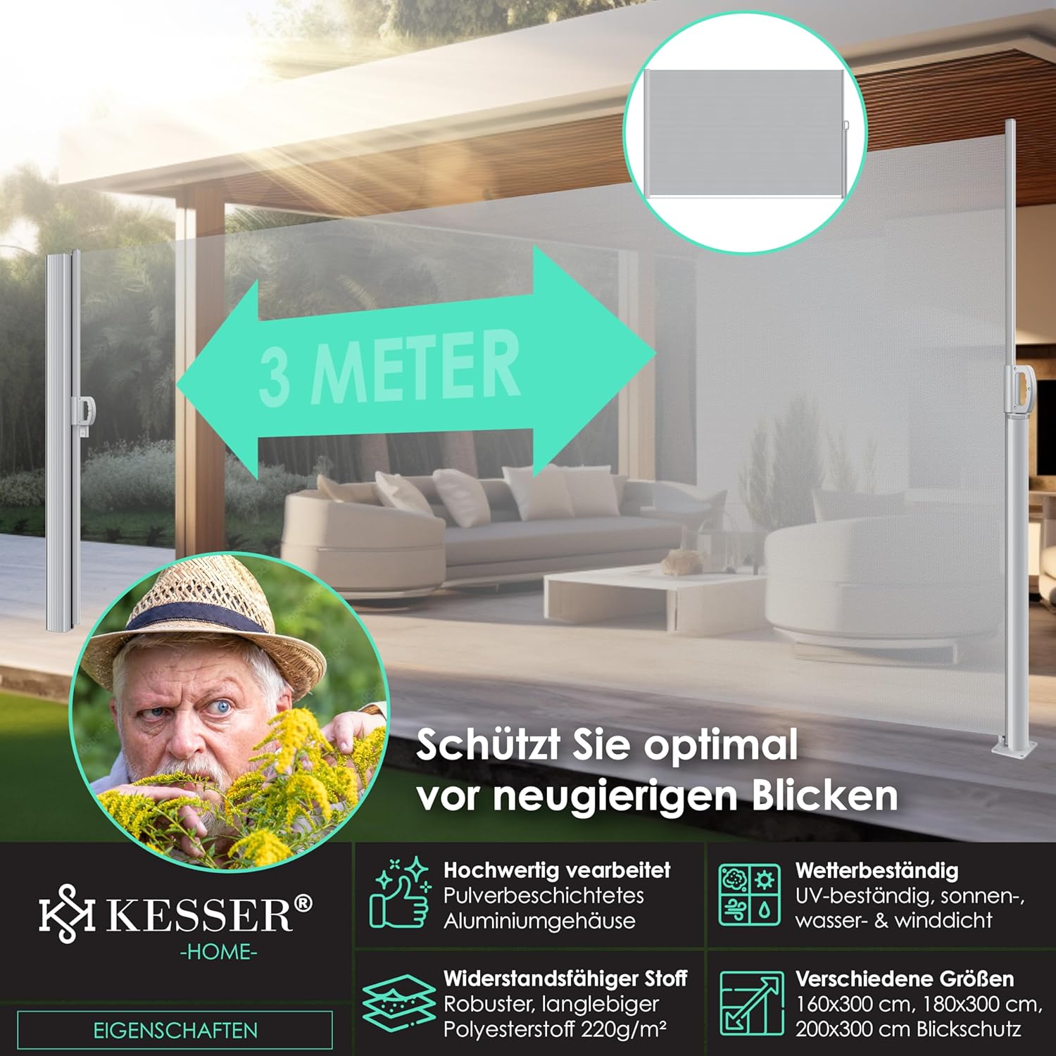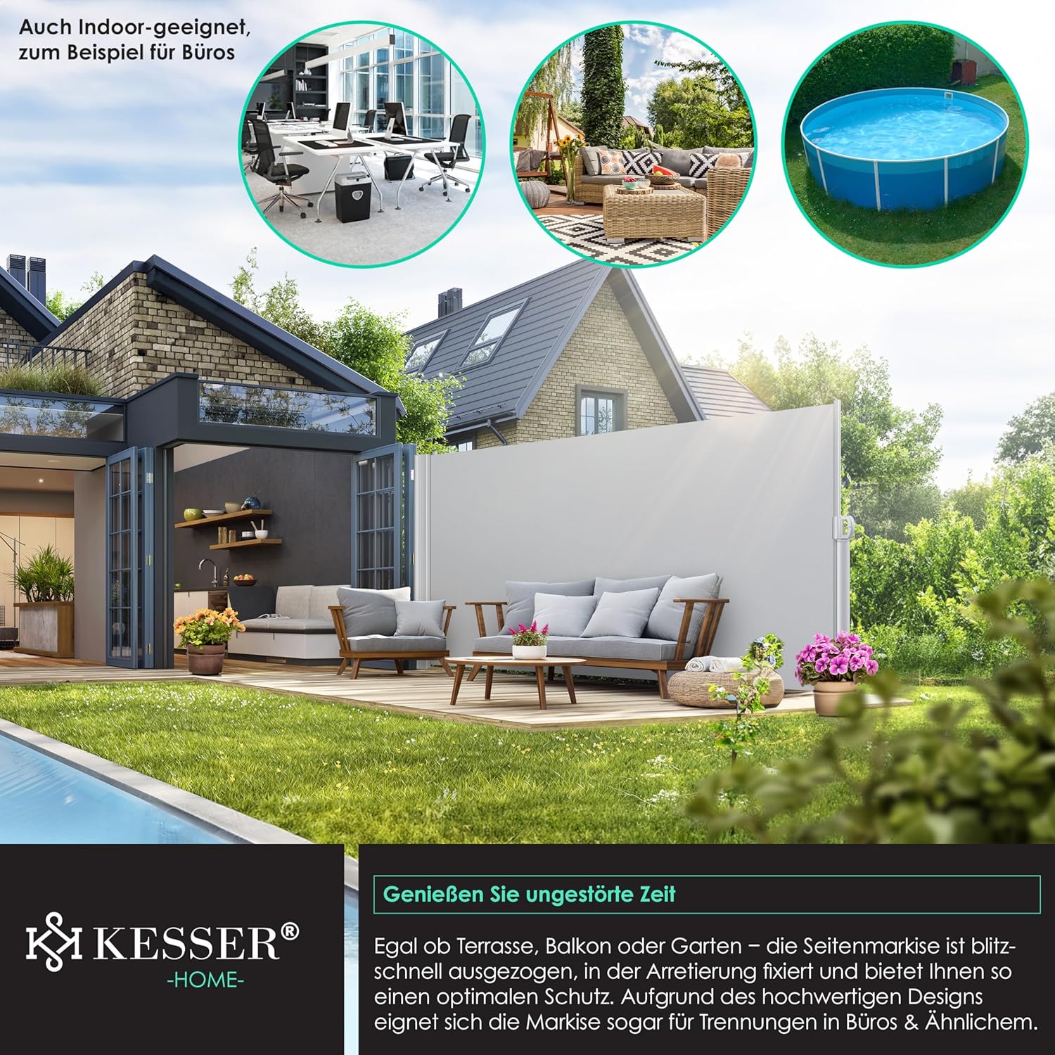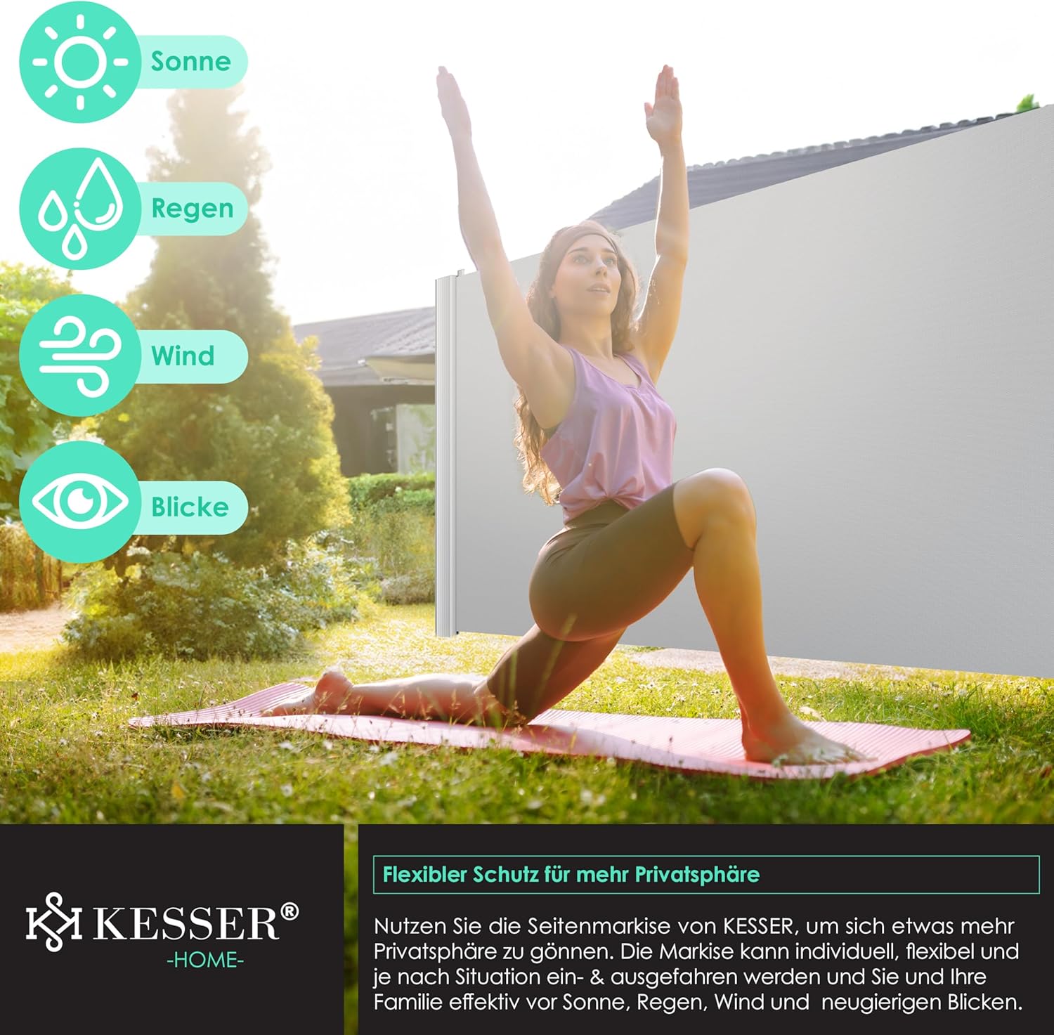 Optimale privacy: de KESSER zijluifel biedt niet alleen bescherming tegen nieuwsgierige blikken, maar maakt ook een flexibele aanpassing van de privacy mogelijk. Of je je nu beschermt tegen nieuwsgierige blikken of meer ruimte wilt, deze zijluifel past zich aan je behoeften aan.